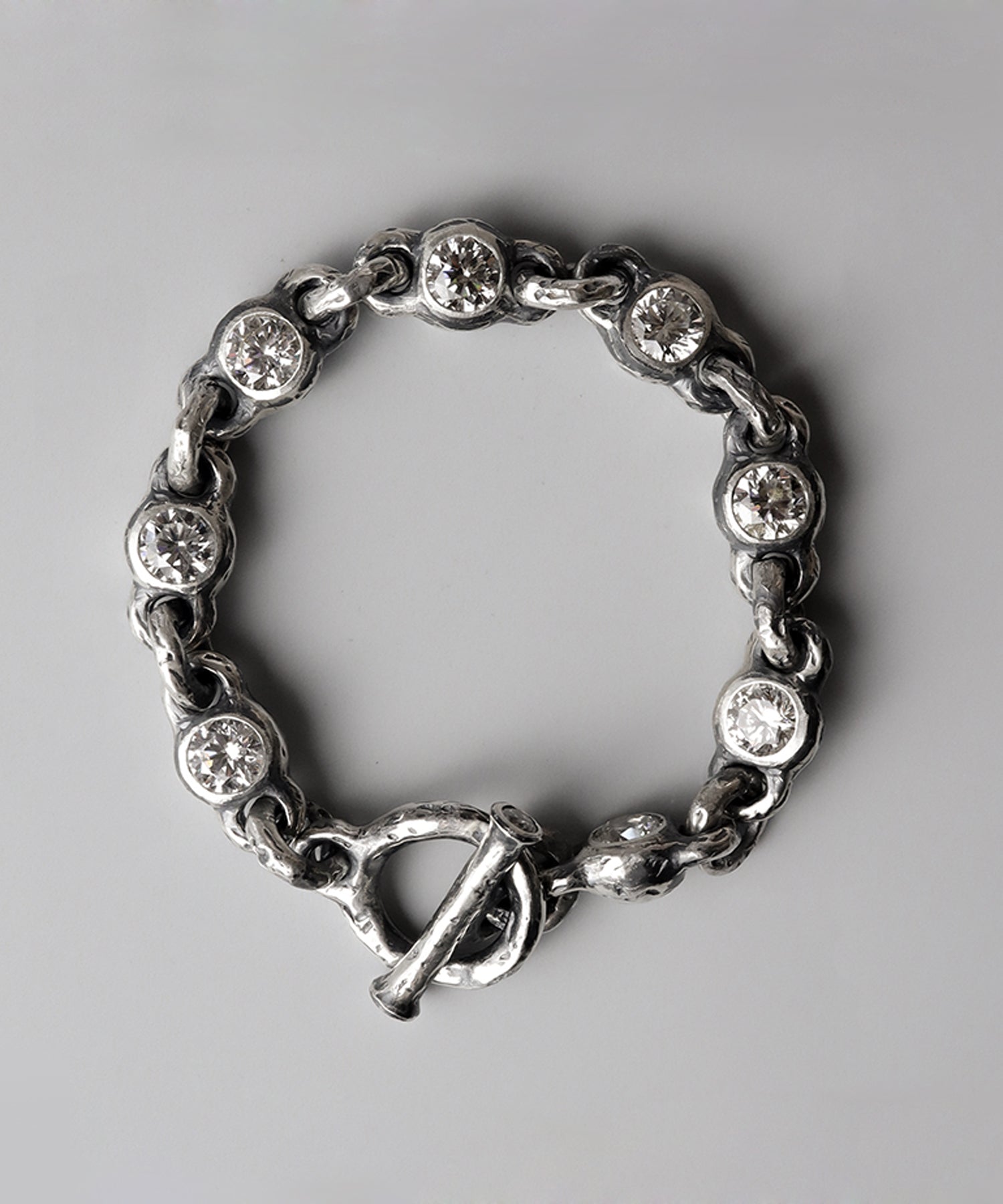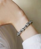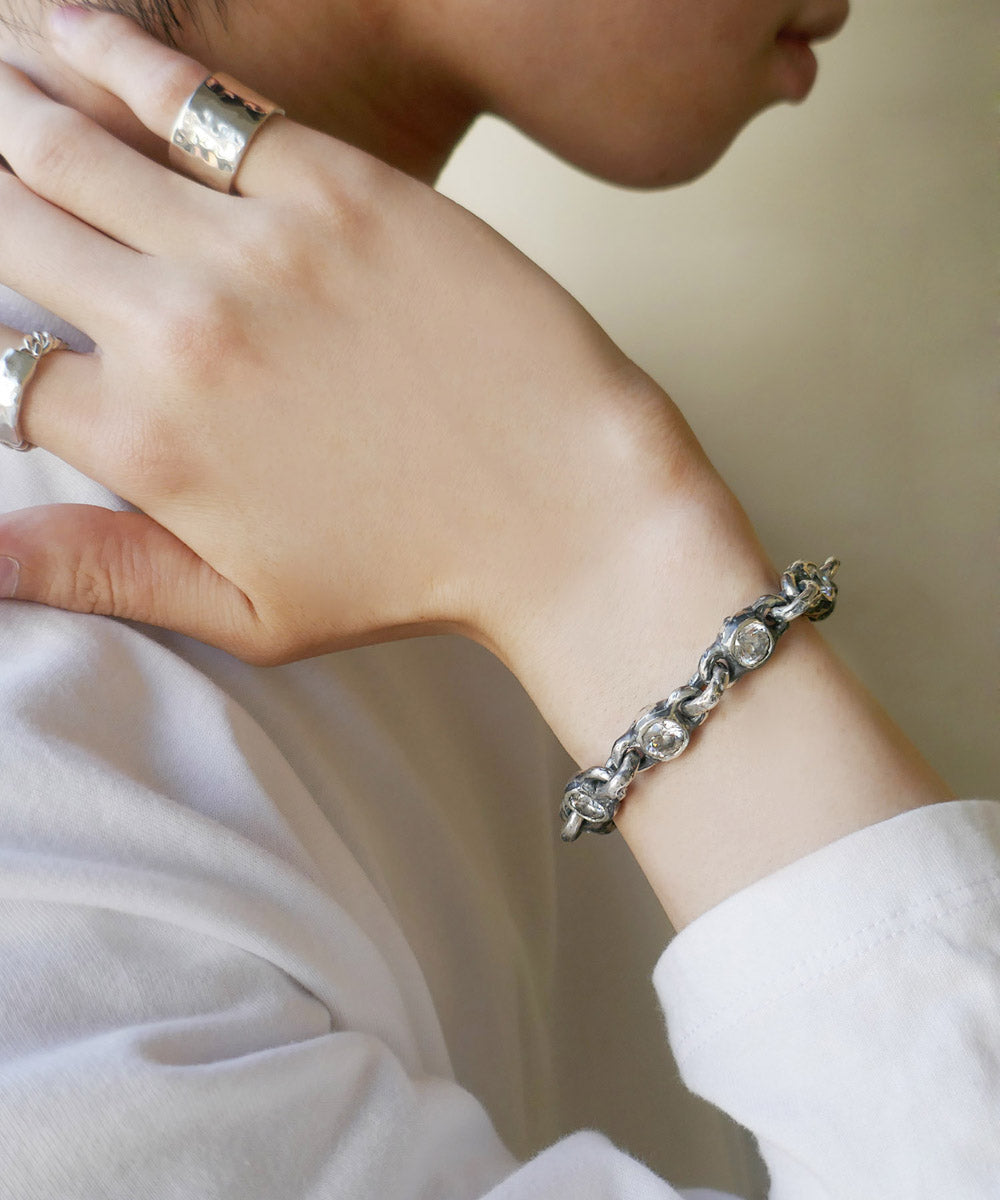 シルバーのハードなデザインにジルコニアをあしらったブレスレット。