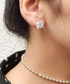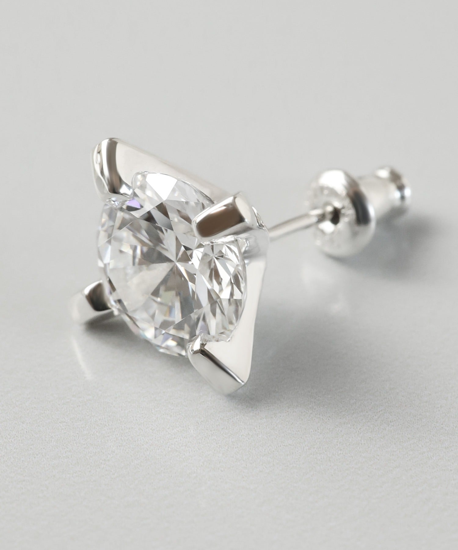 ジルコニアを4本の爪で留めたデザインのピアス。シンプルなデザインなので、