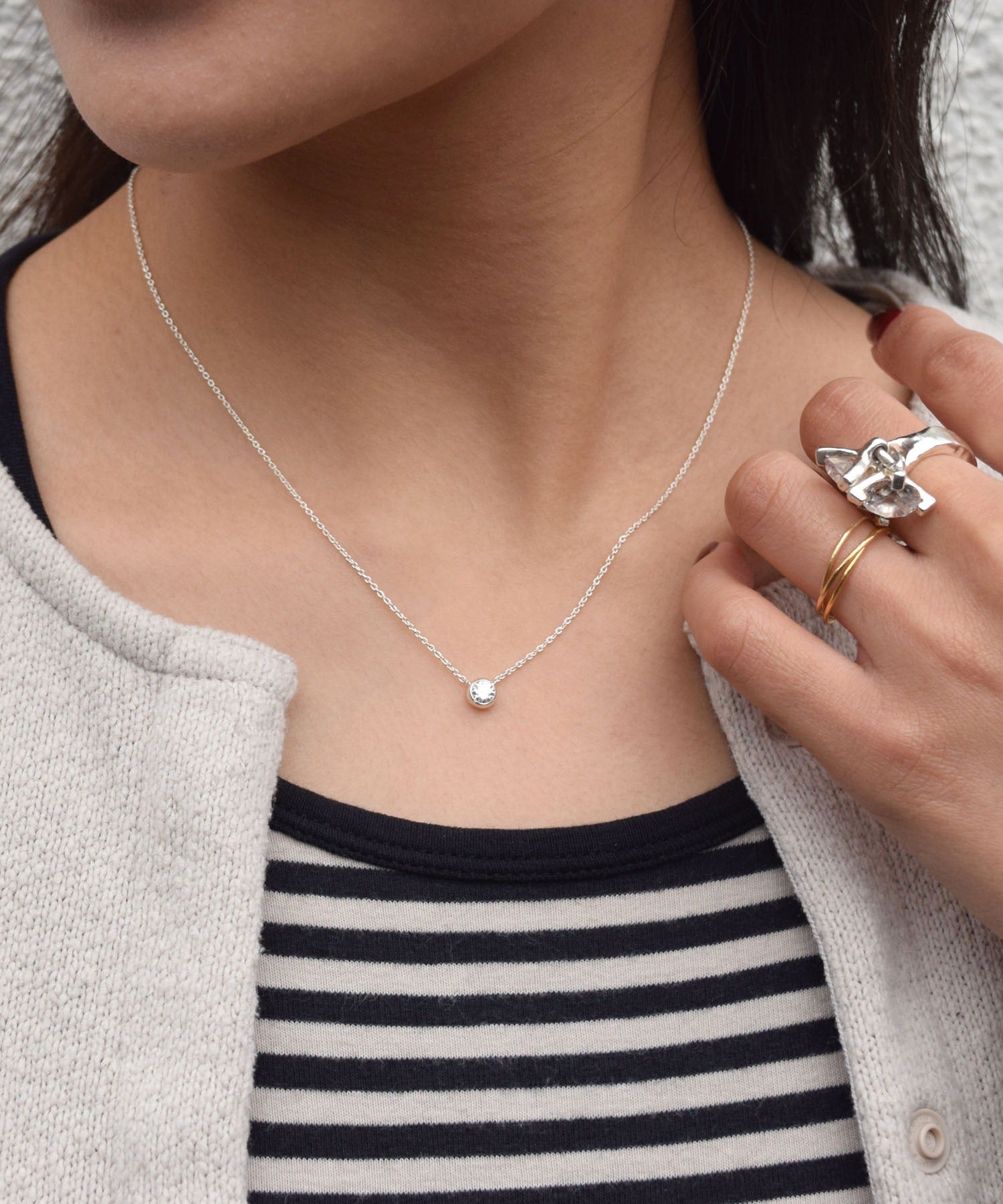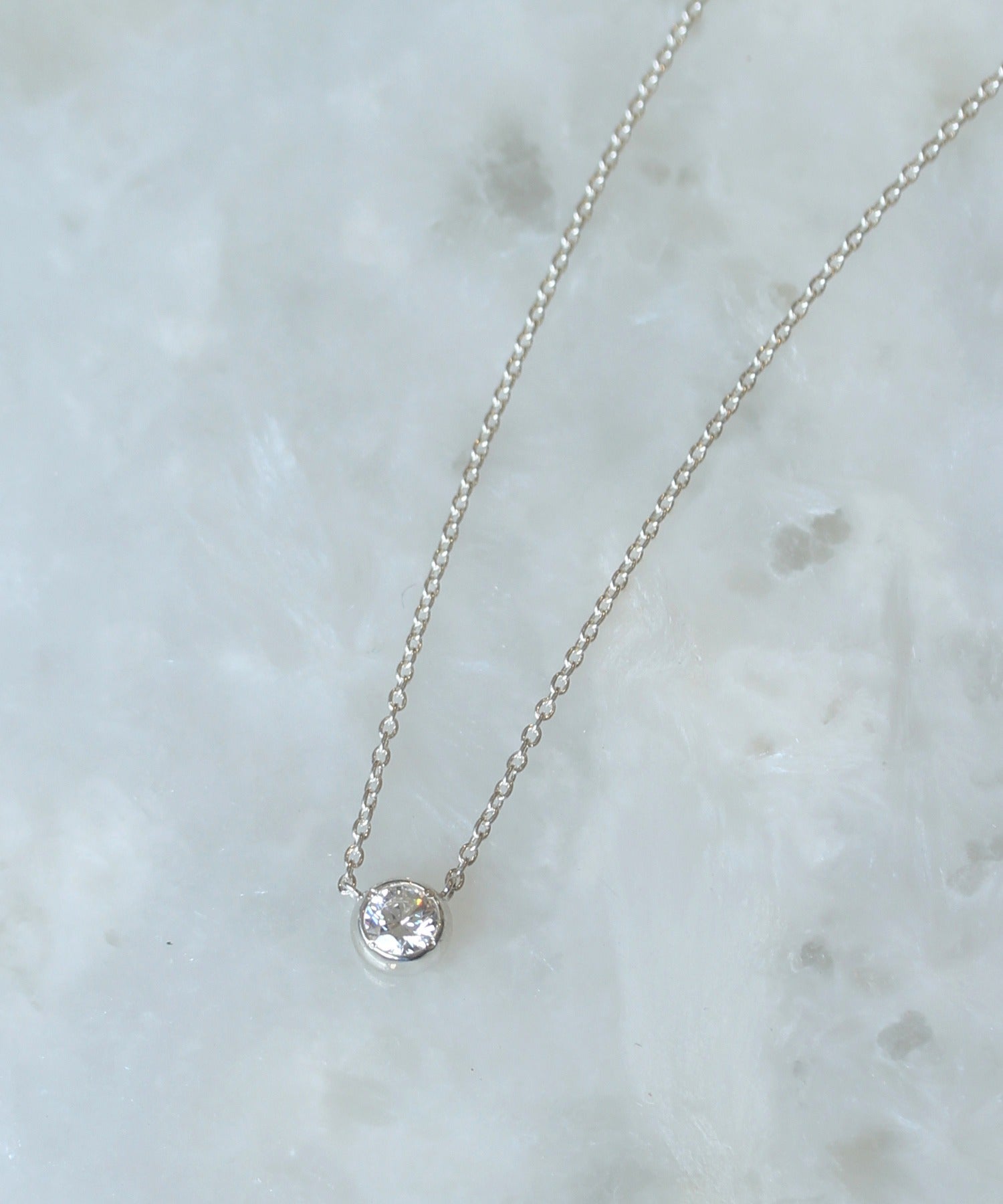 シンプルにキュービックジルコニアが1石ついたネックレス。