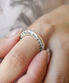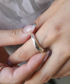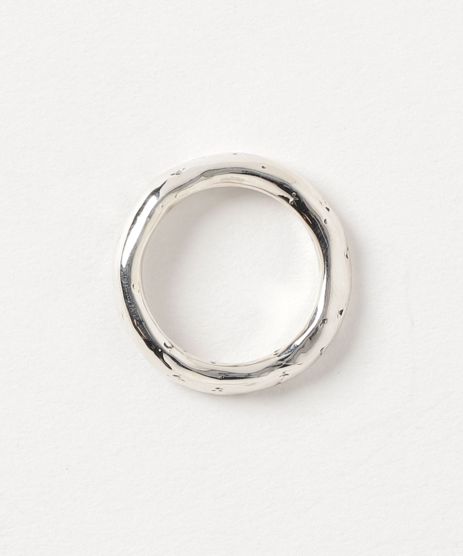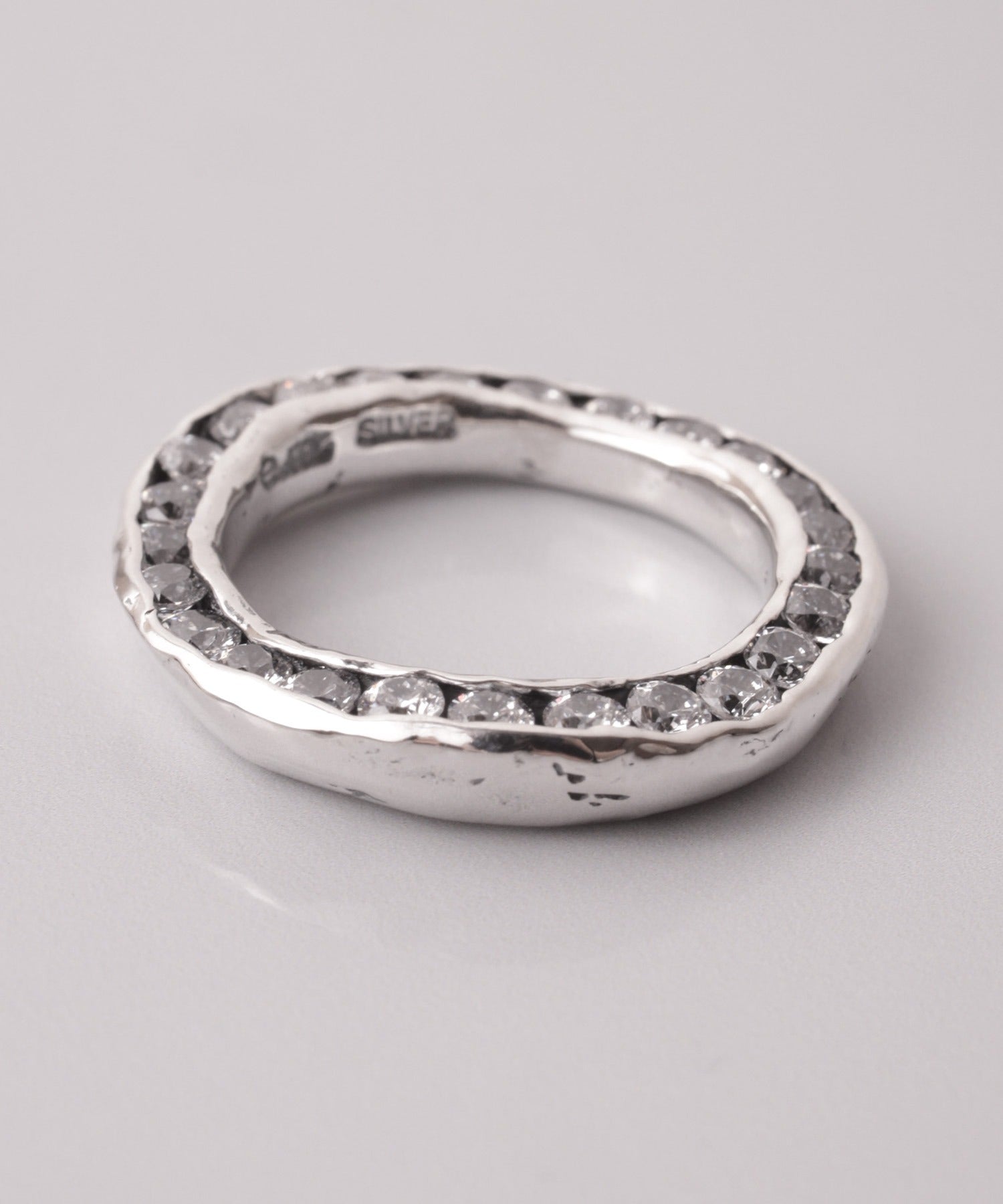リングの上側面にキュービックジルコニアを1周セッティングしています。リングの側面はあえて凹凸をつけ、いぶし加工で味わいをつけることで、