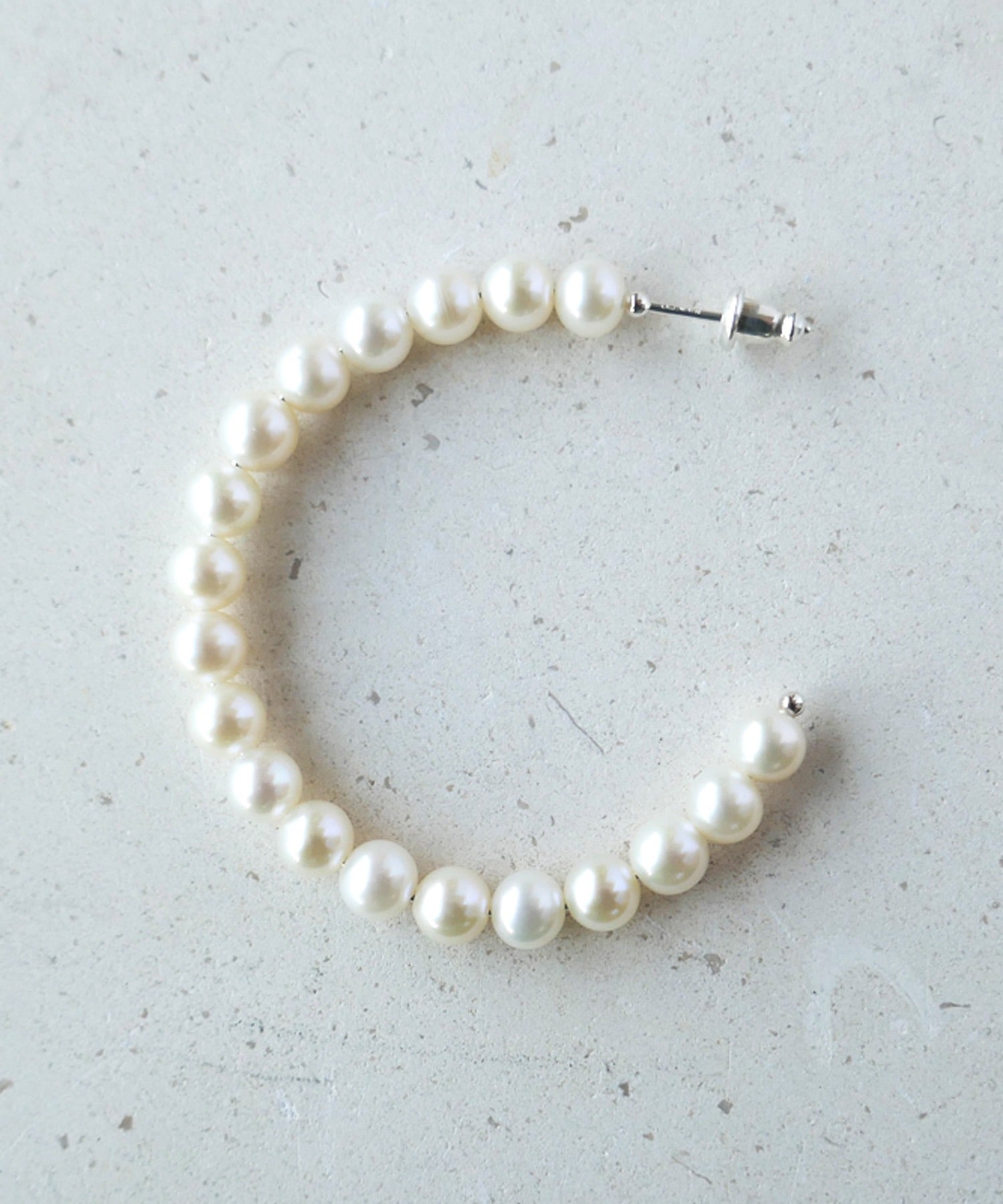 パールを贅沢に使ったフープピアス。カジュアルとラグジュアリーのちょうど、真ん中にあるような