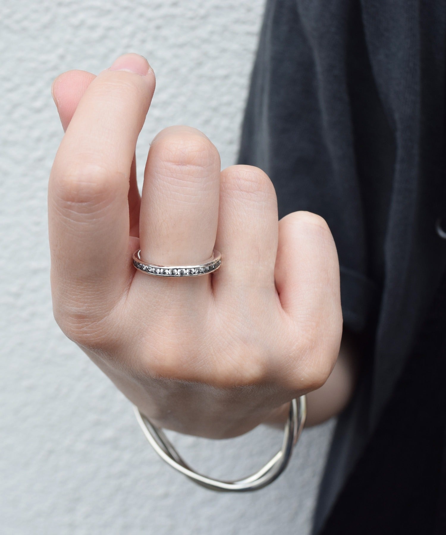 キュービックジルコニアがサイドにあしらわれたエタニティリング。