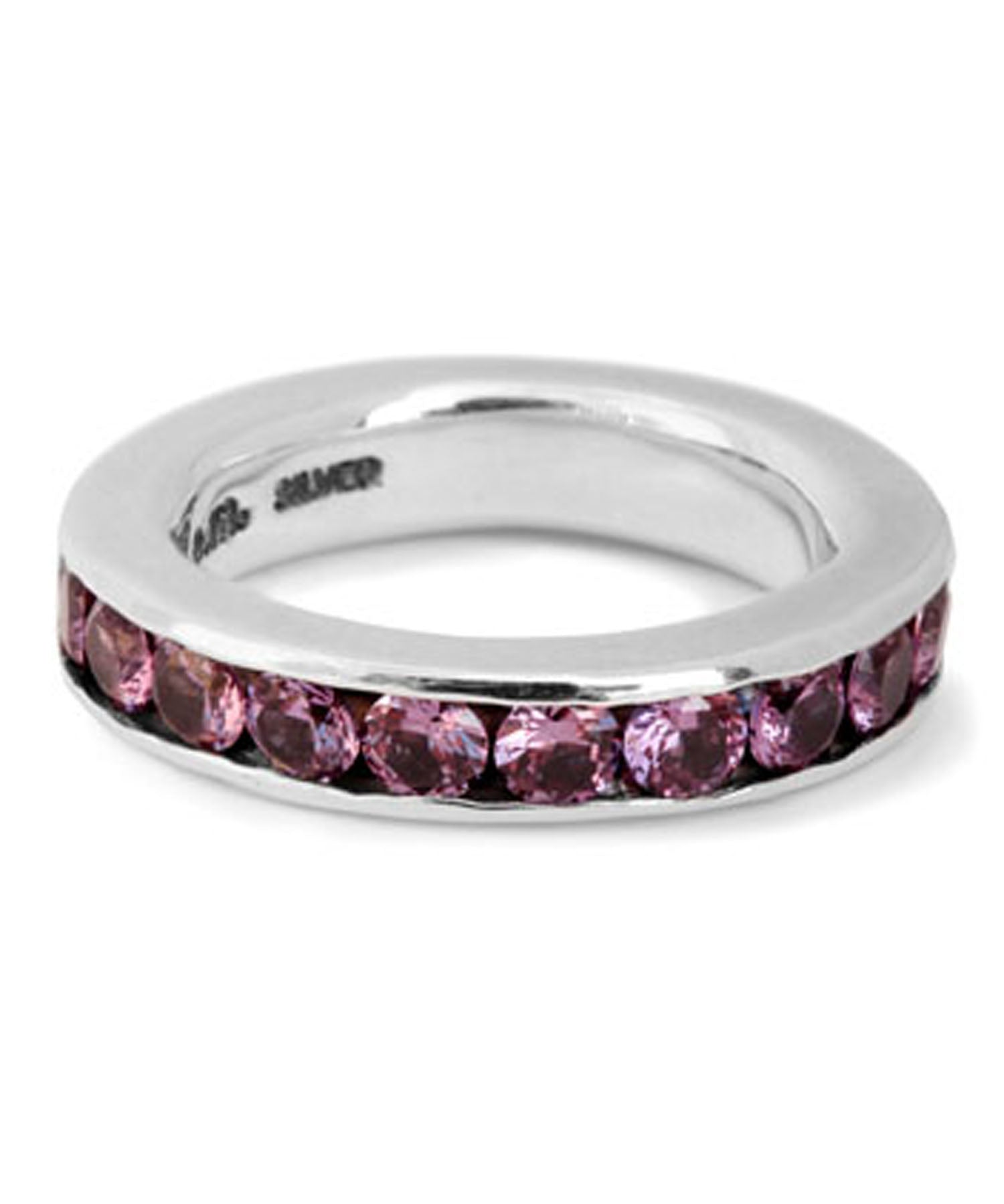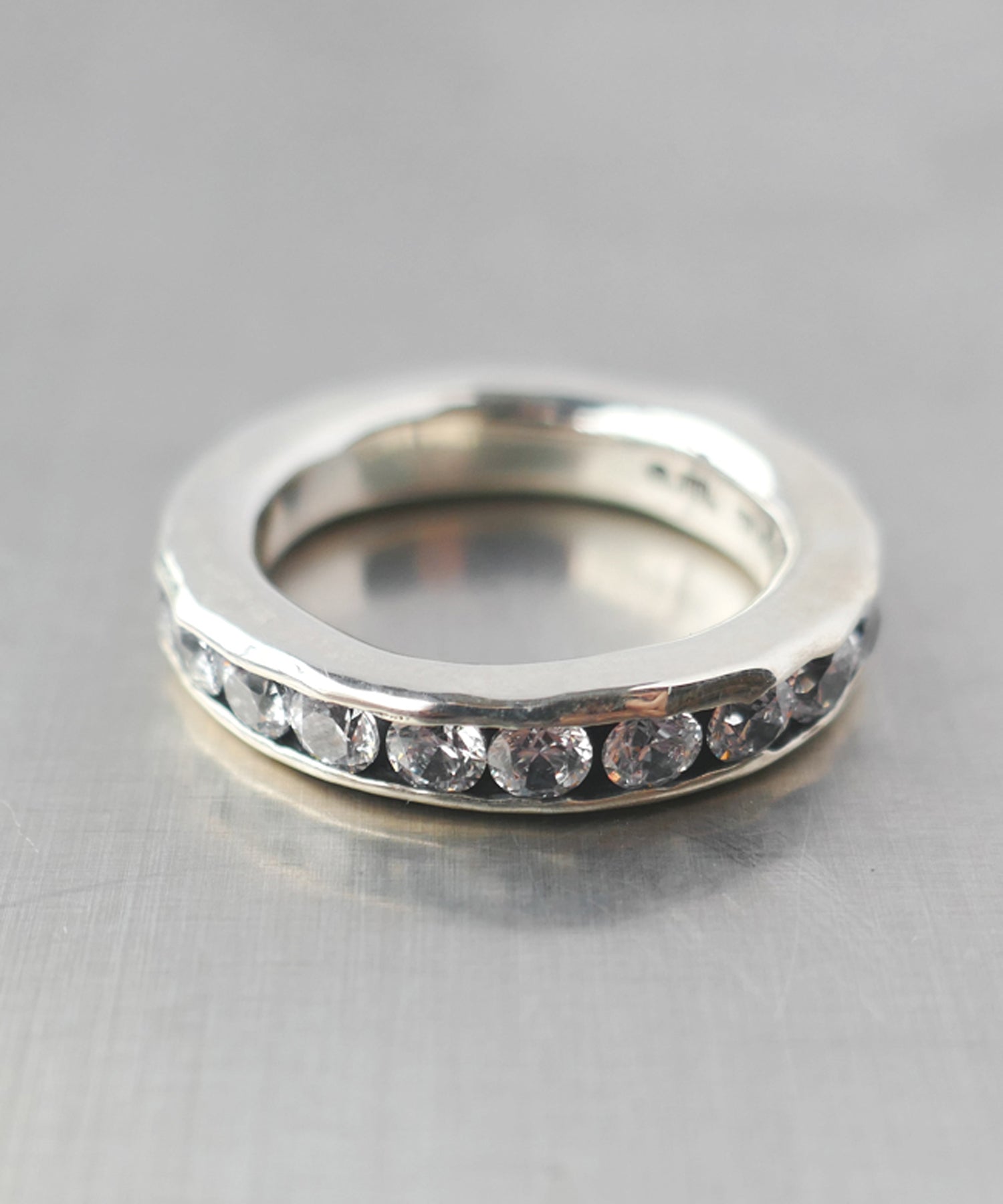サイドにストーンがあしらわれたエタニティリング。ボリュームのあるデザインで