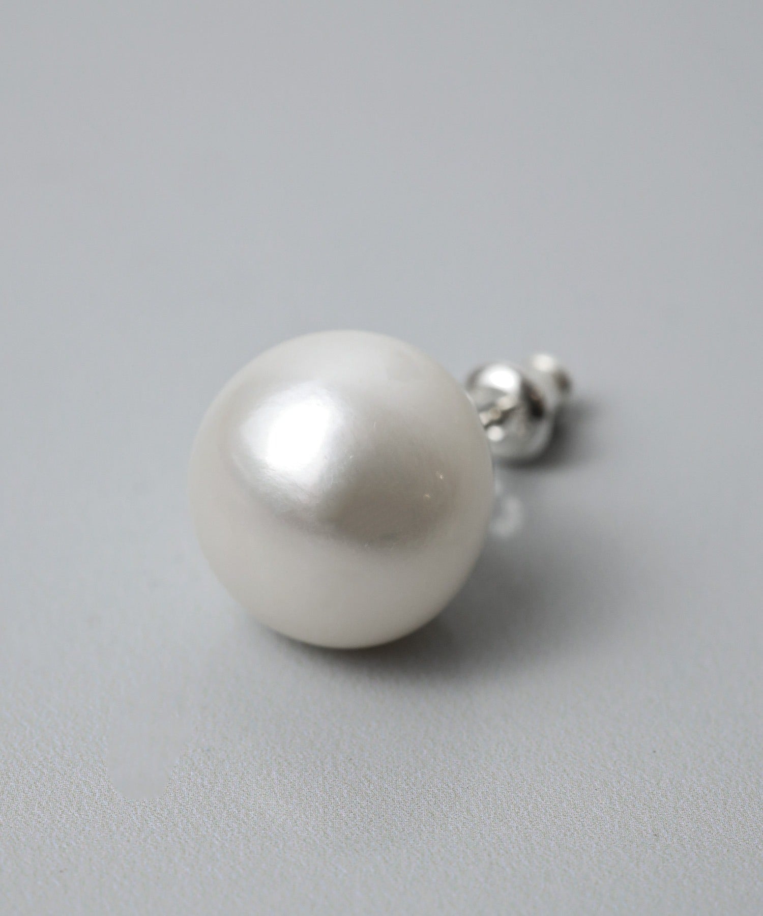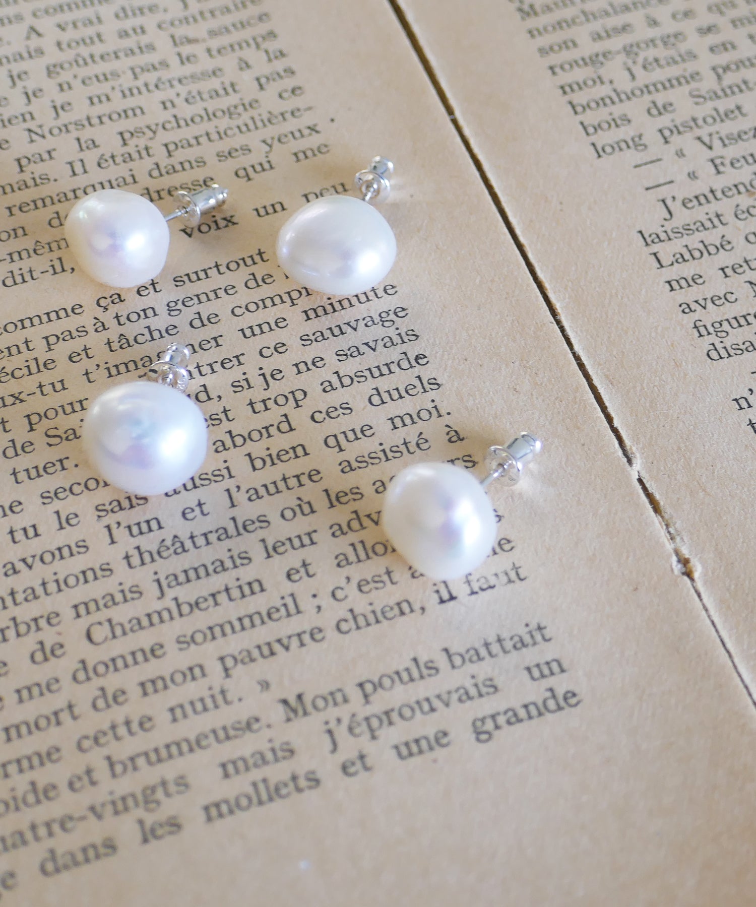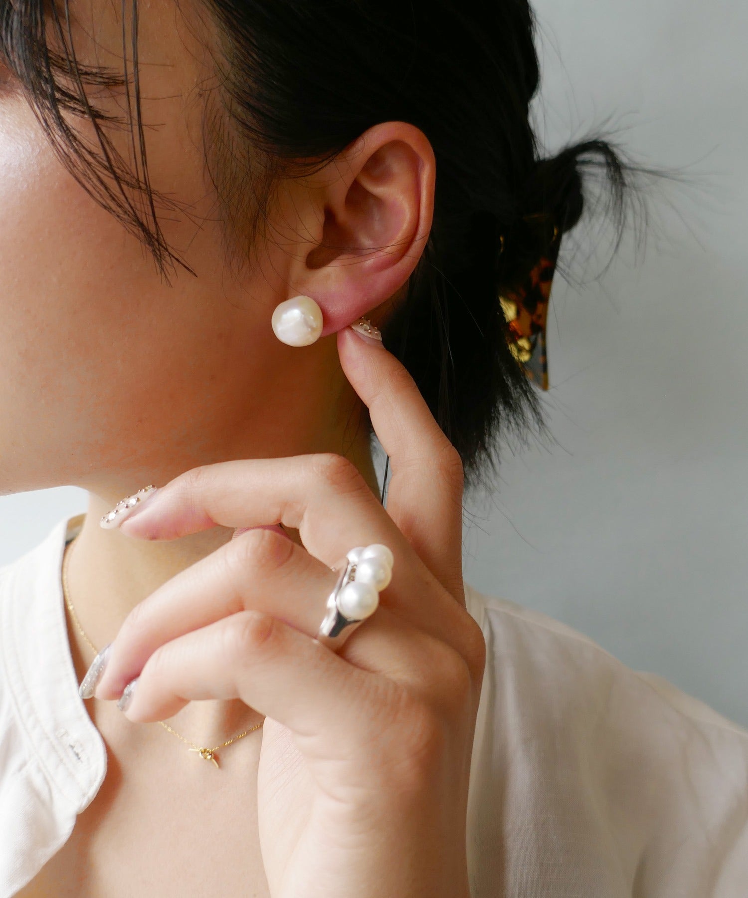 大粒のバロックパールピアス。若干いびつなフォルムが愛おしい。