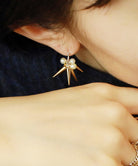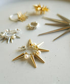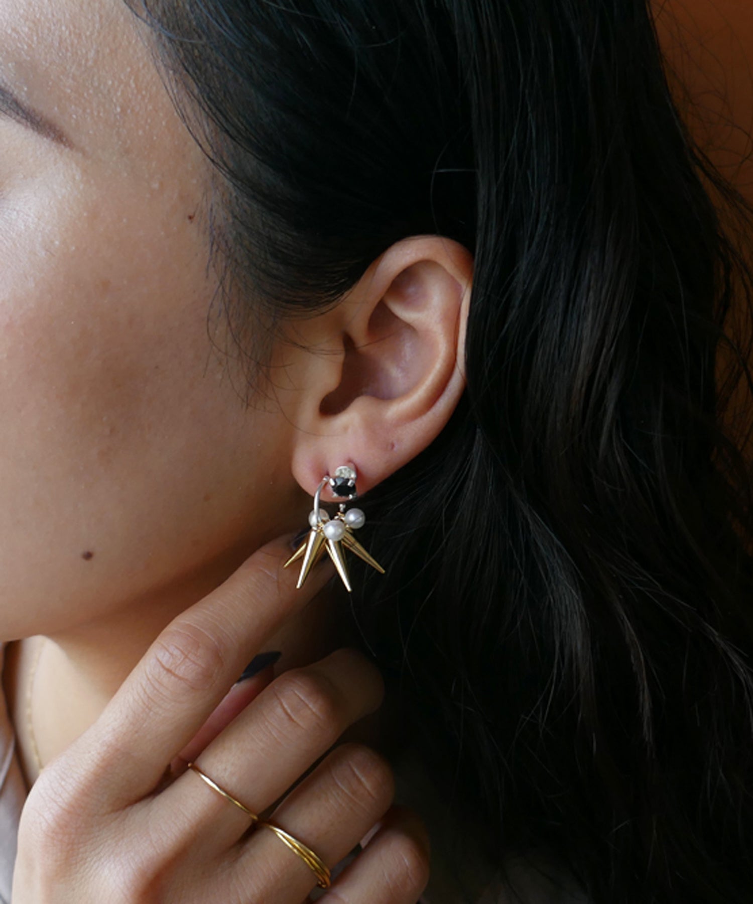 スタッズが揺れるフープピアスにパールがあしらわれたデザイン。