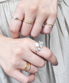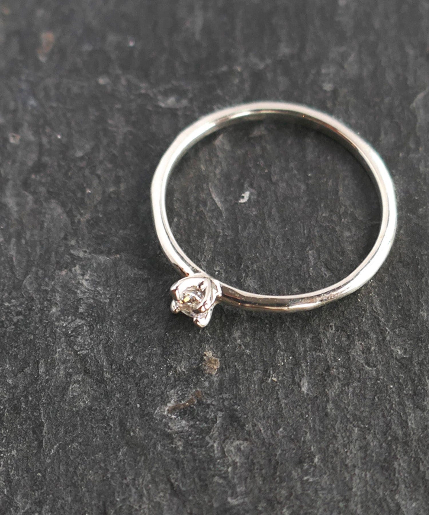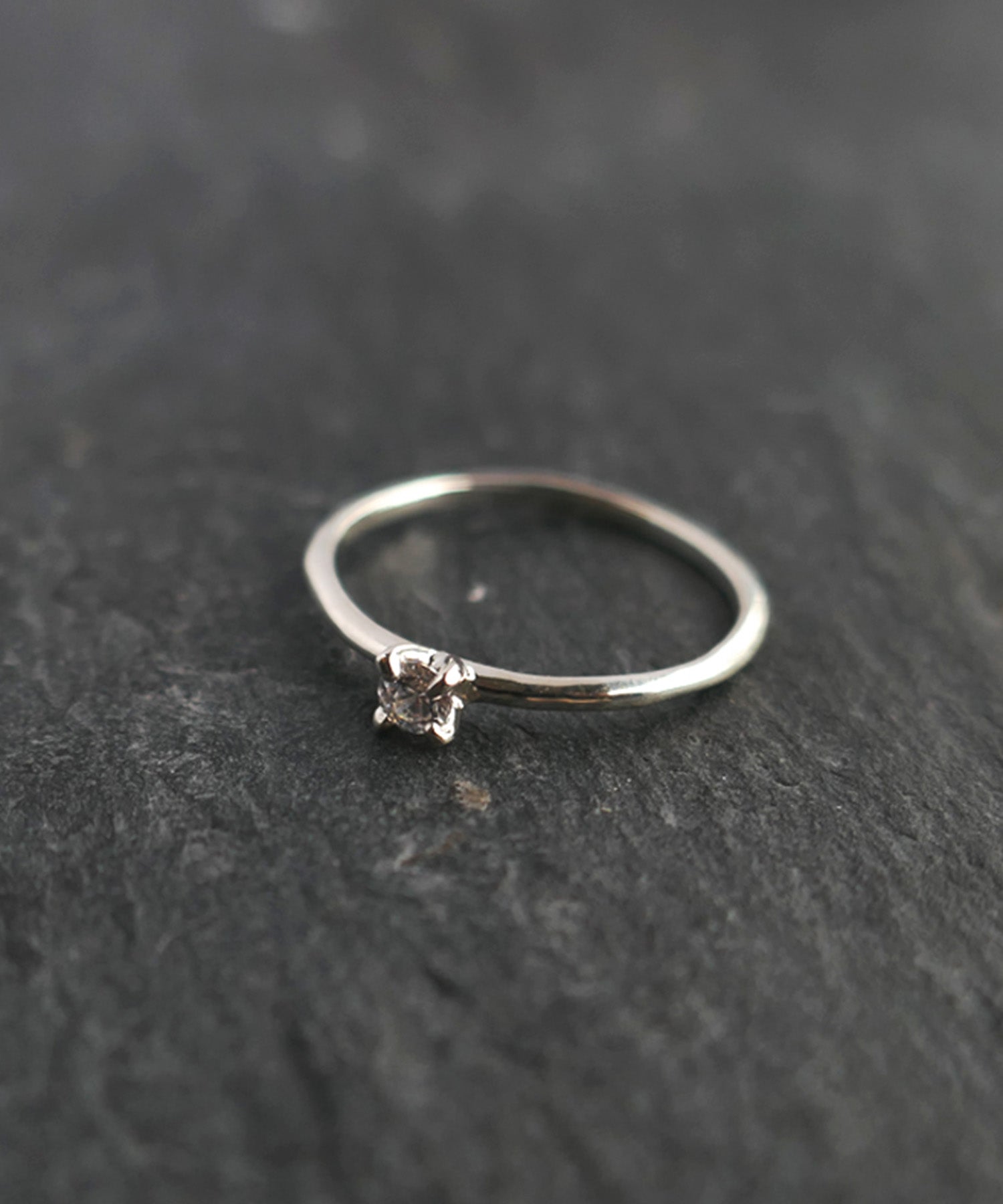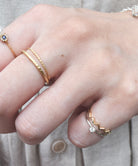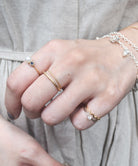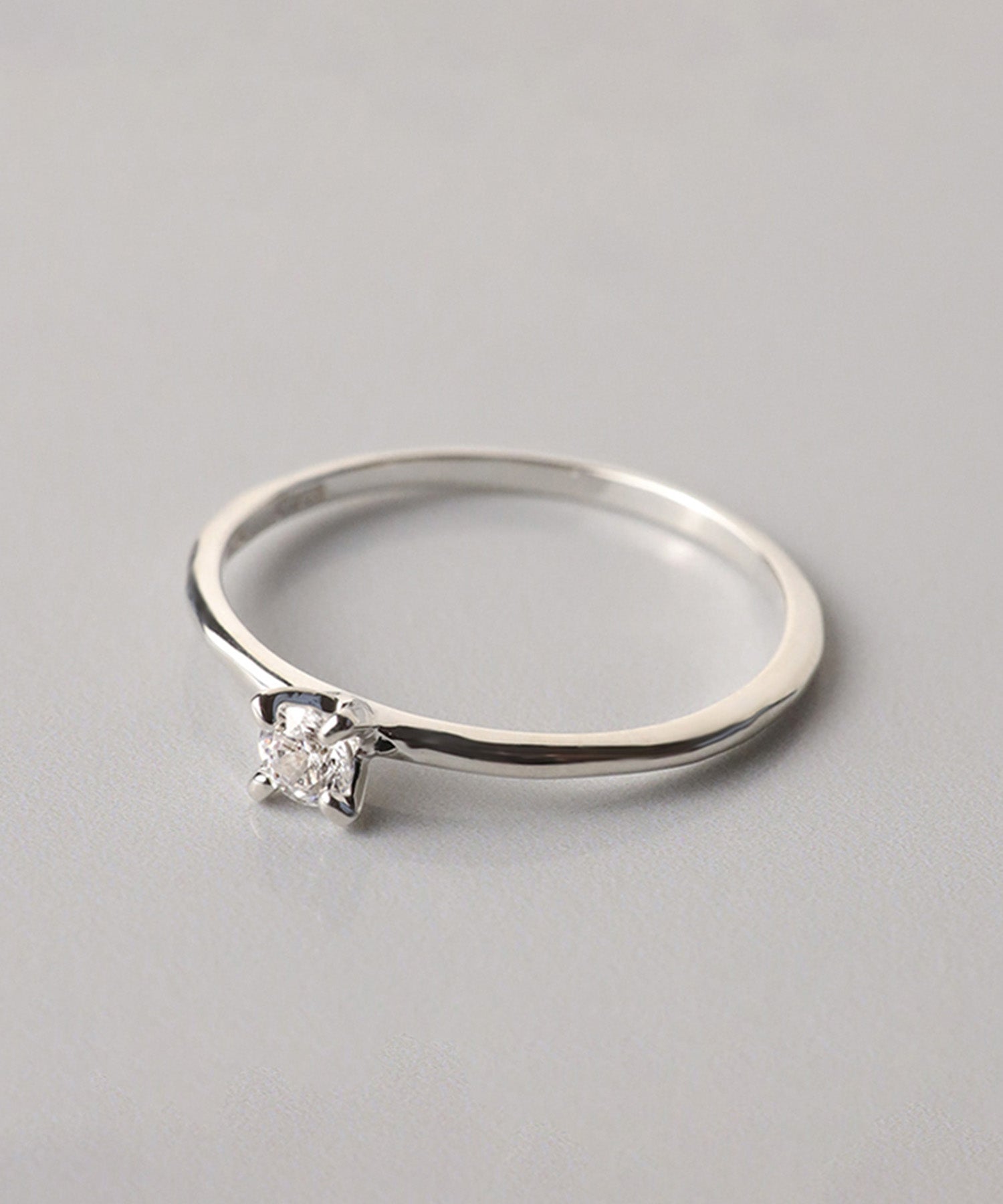 小さめのキュービックジルコニアが1石セッティングされたファランジリング。シンプルなゴールドリングや幅広なデザインのリングとの重ね着けがおすすめ。さり気なく光るジルコニアがポイントです。