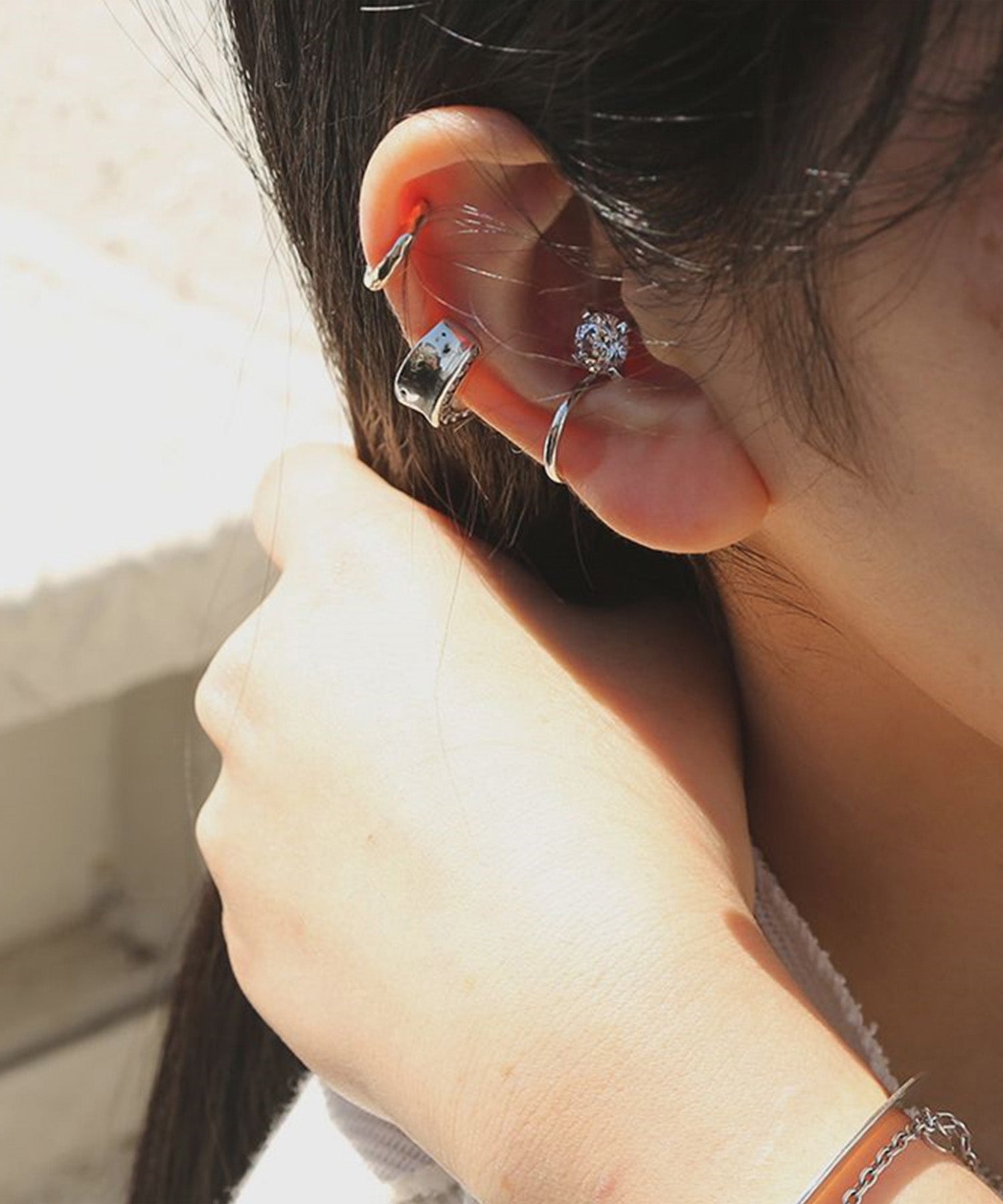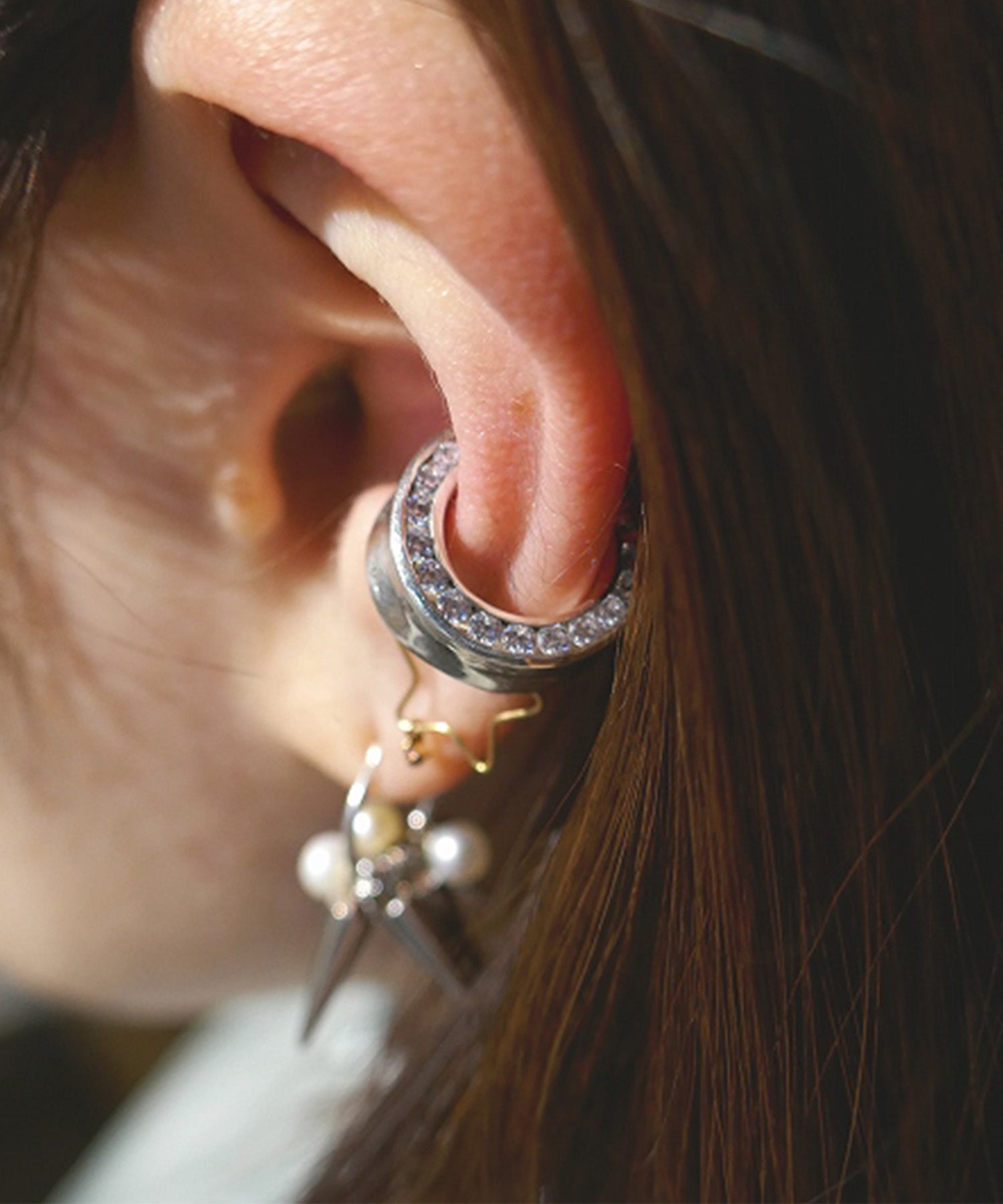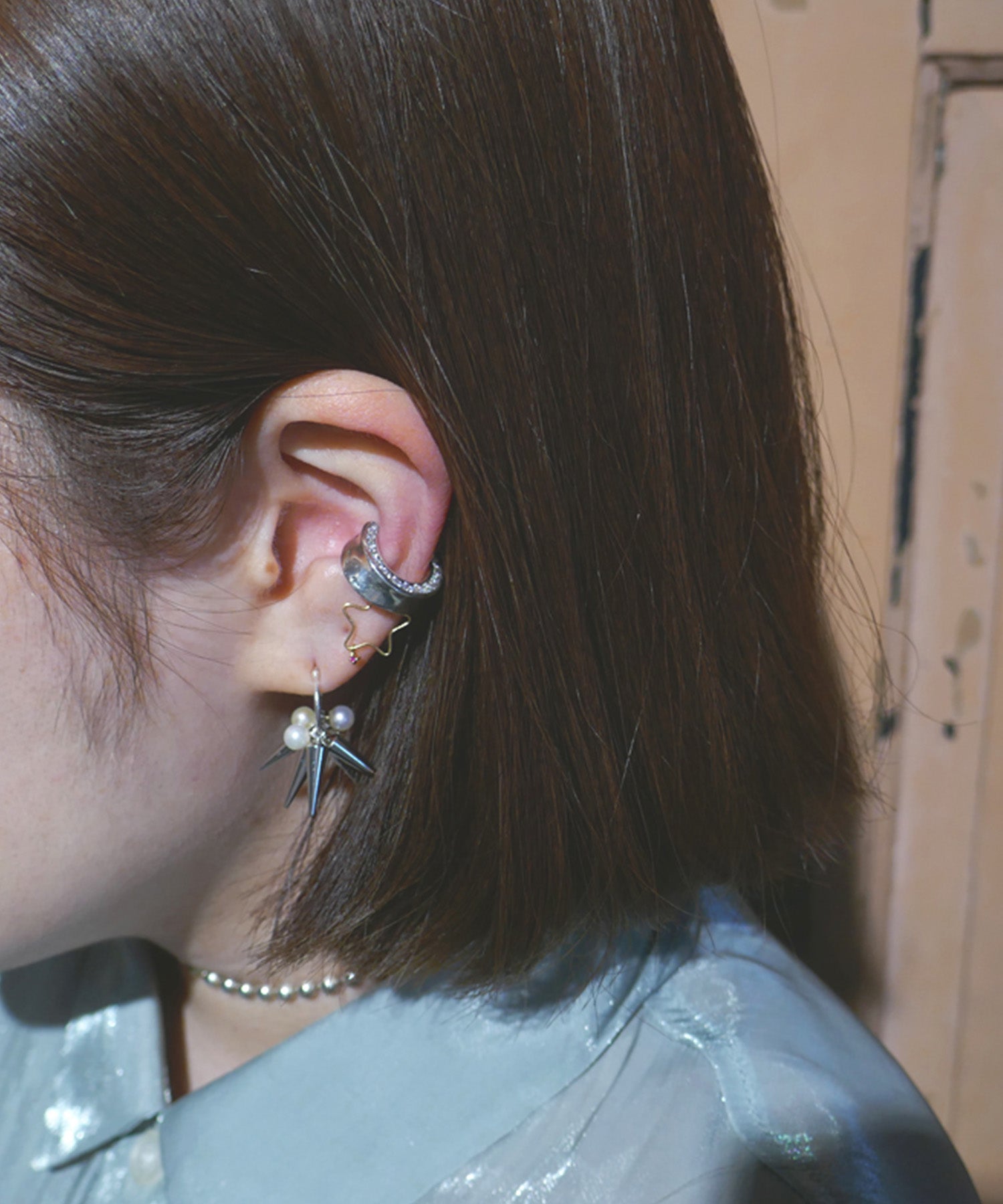 側面から覗くジルコニアでe.m.らしさ抜群のイヤーカフに仕上がっています。