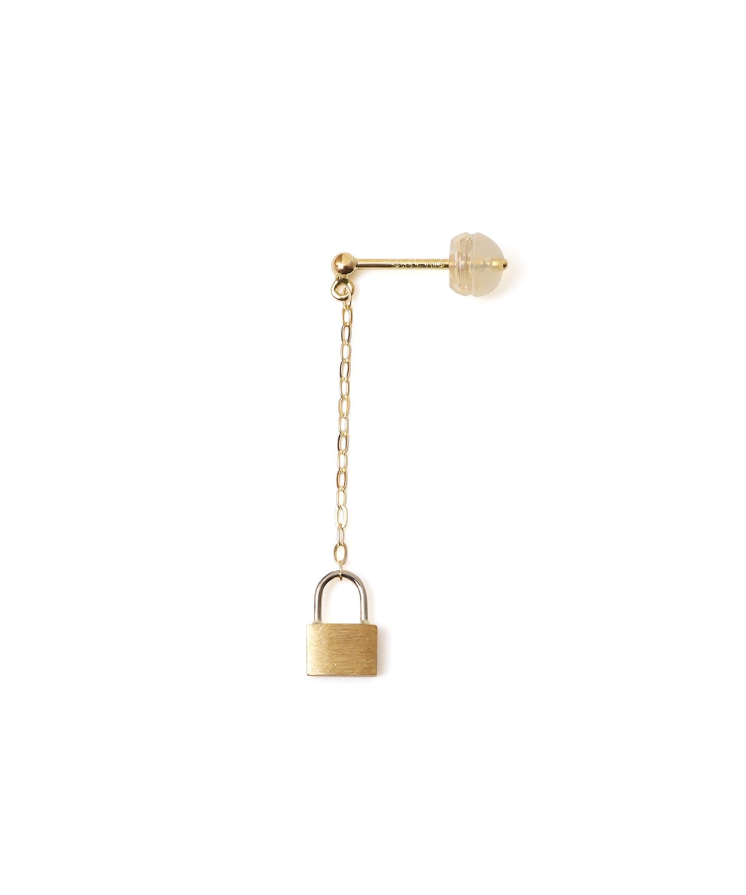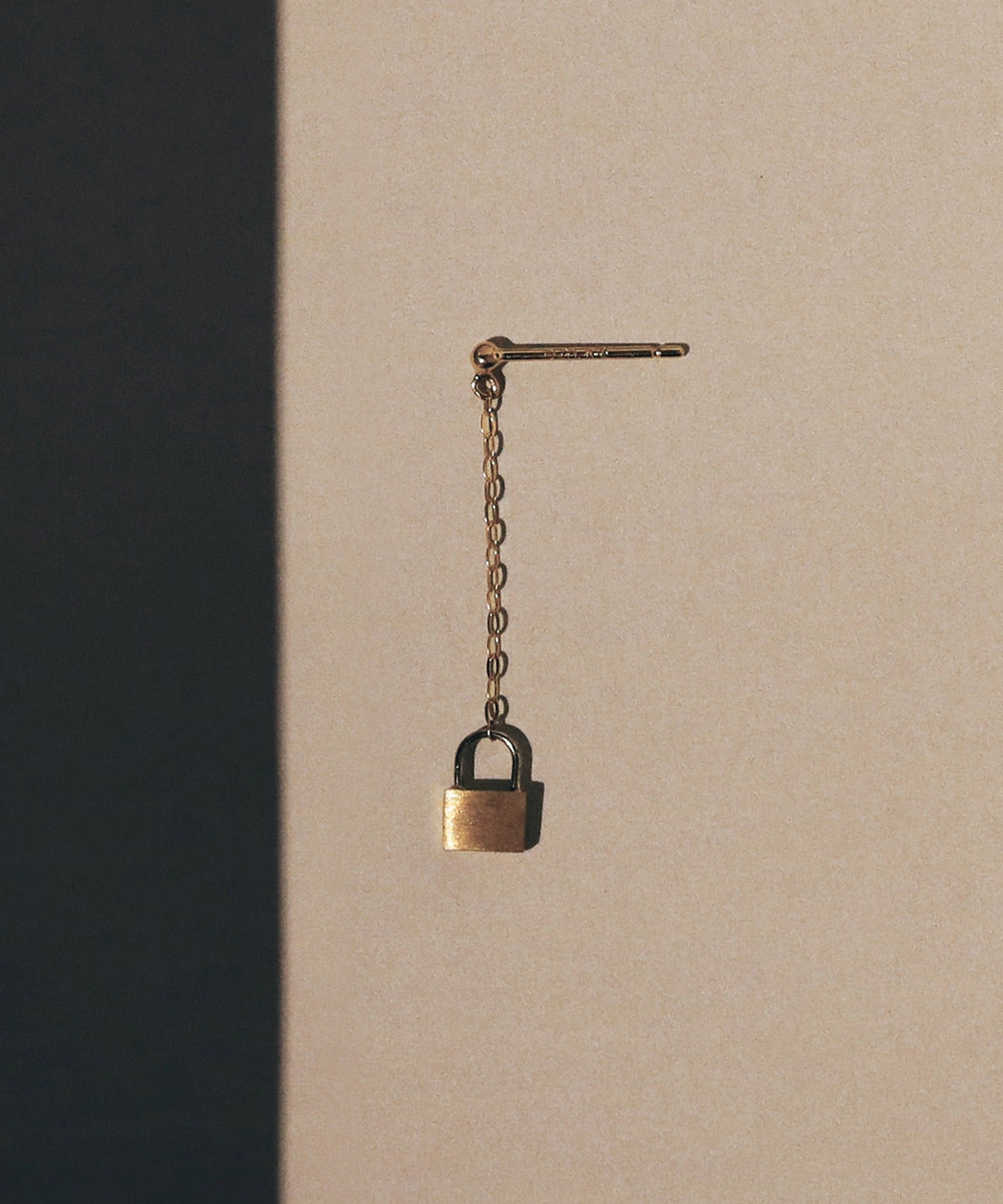 細部までこだわった南京錠モチーフがチェーンで下がったピアス。