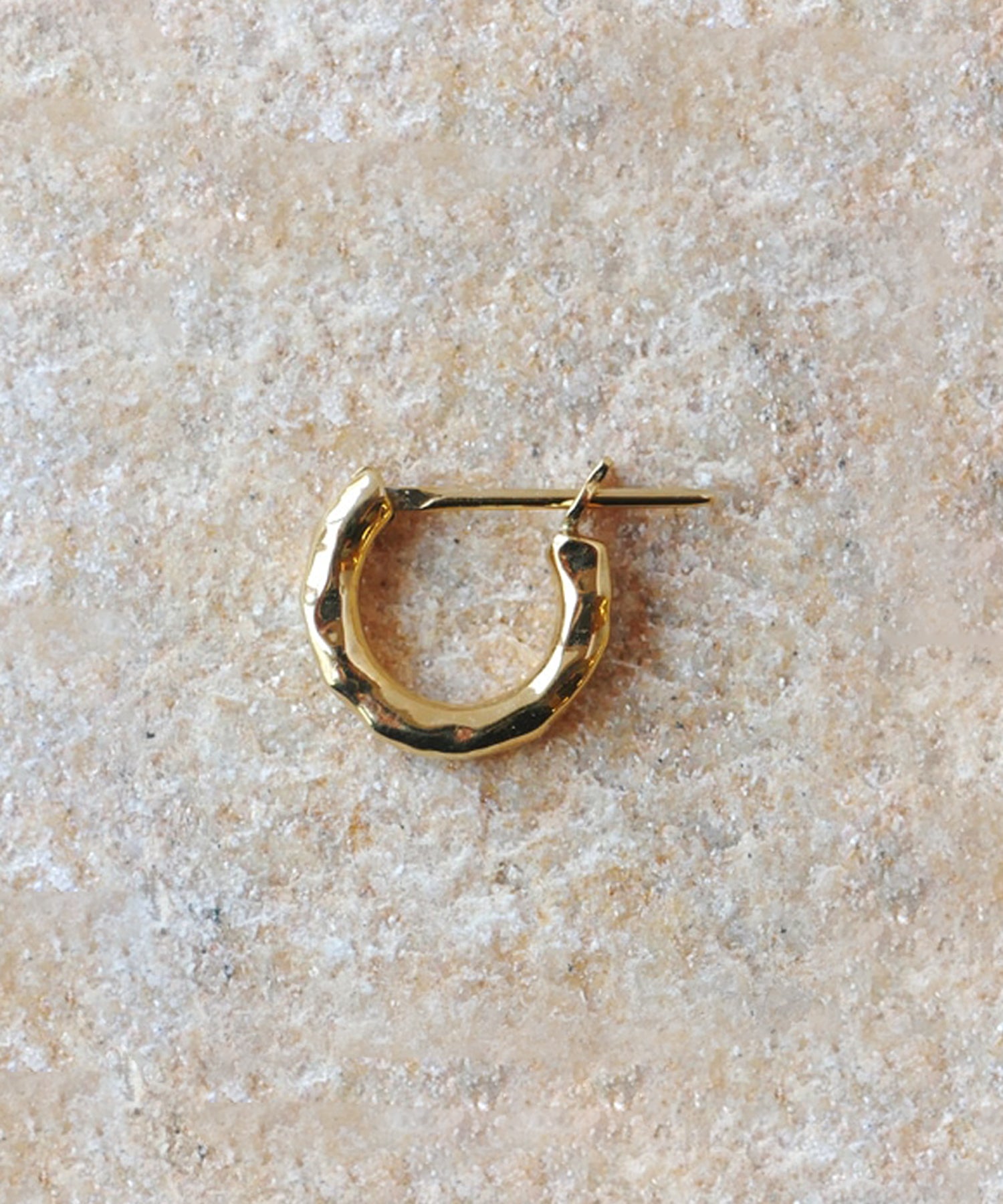 シンプルなゴールドフープピアス。耳たぶに沿うようなサイズ感で