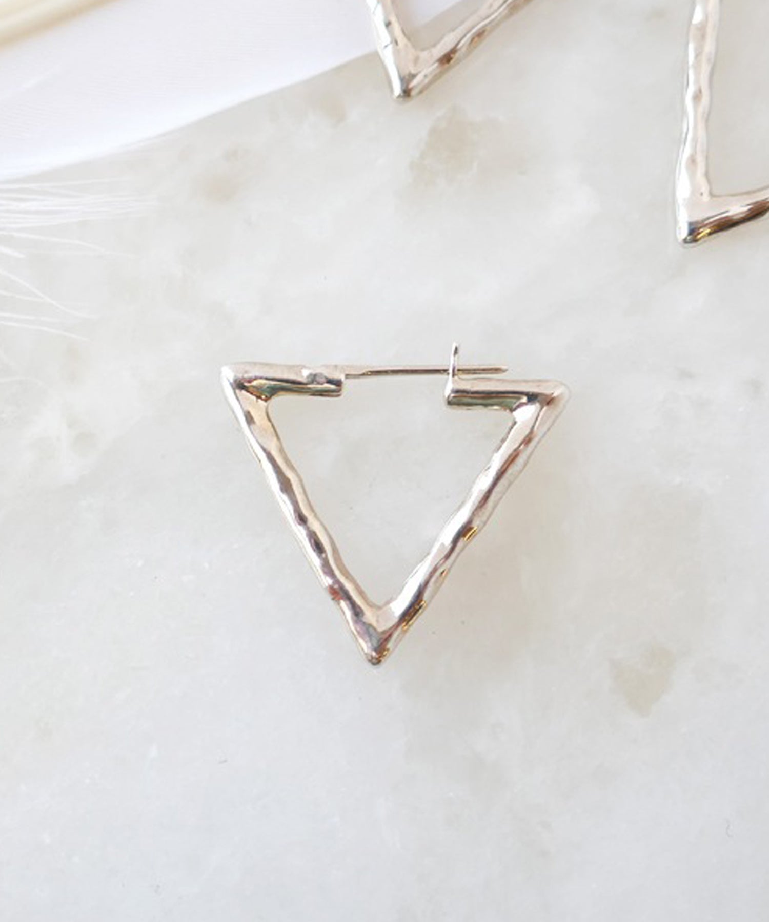 程よいテクスチャーがカジュアルな印象で使いやすいトライアングルフープピアス。