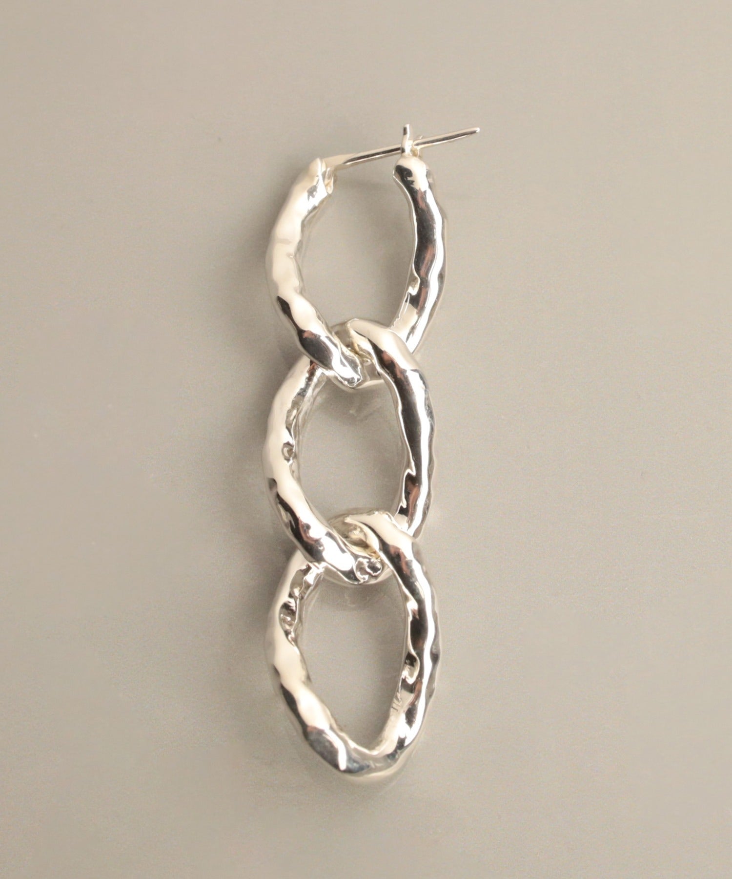 たたきのテクスチャーが魅力的な大きめのチェーンピアス。
