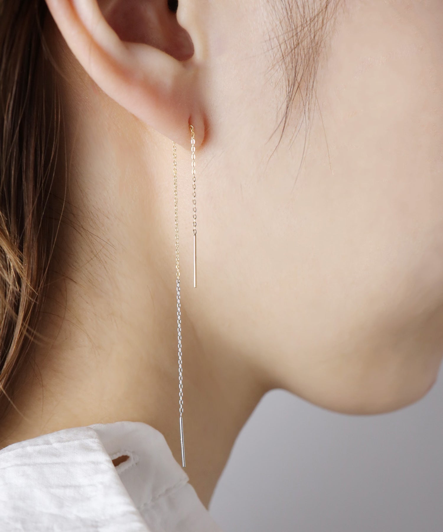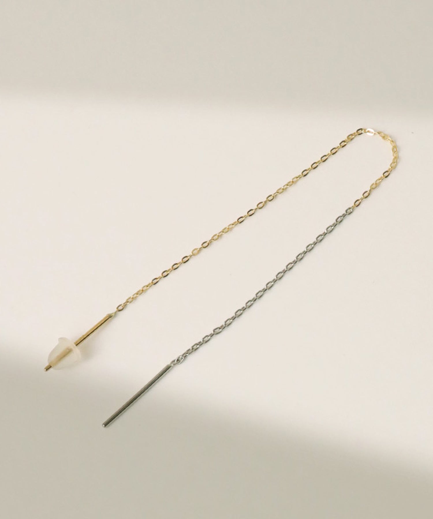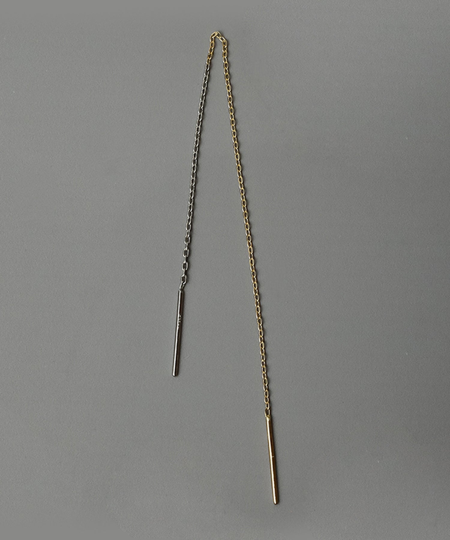 ゴールドとプラチナ2種類を使ったロングチェーンピアス。