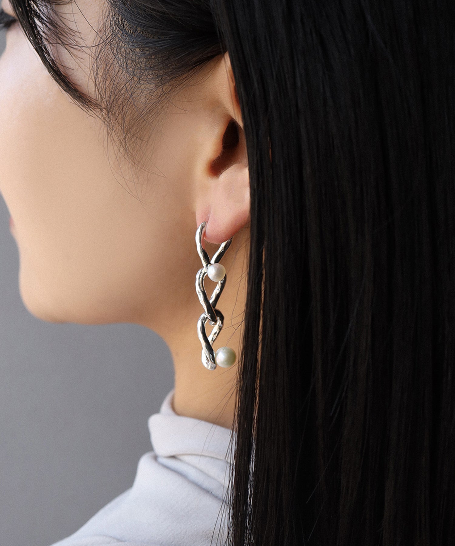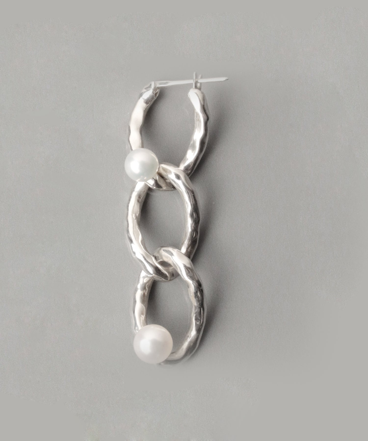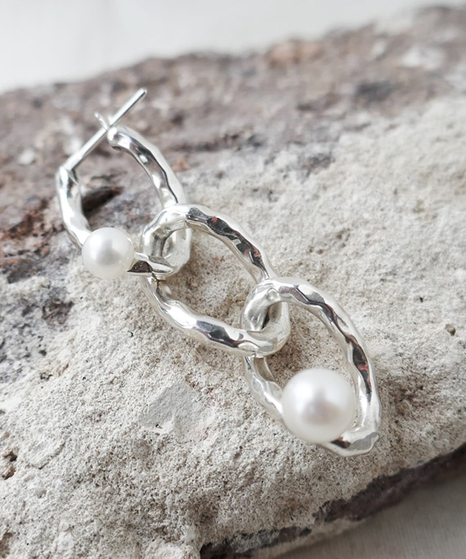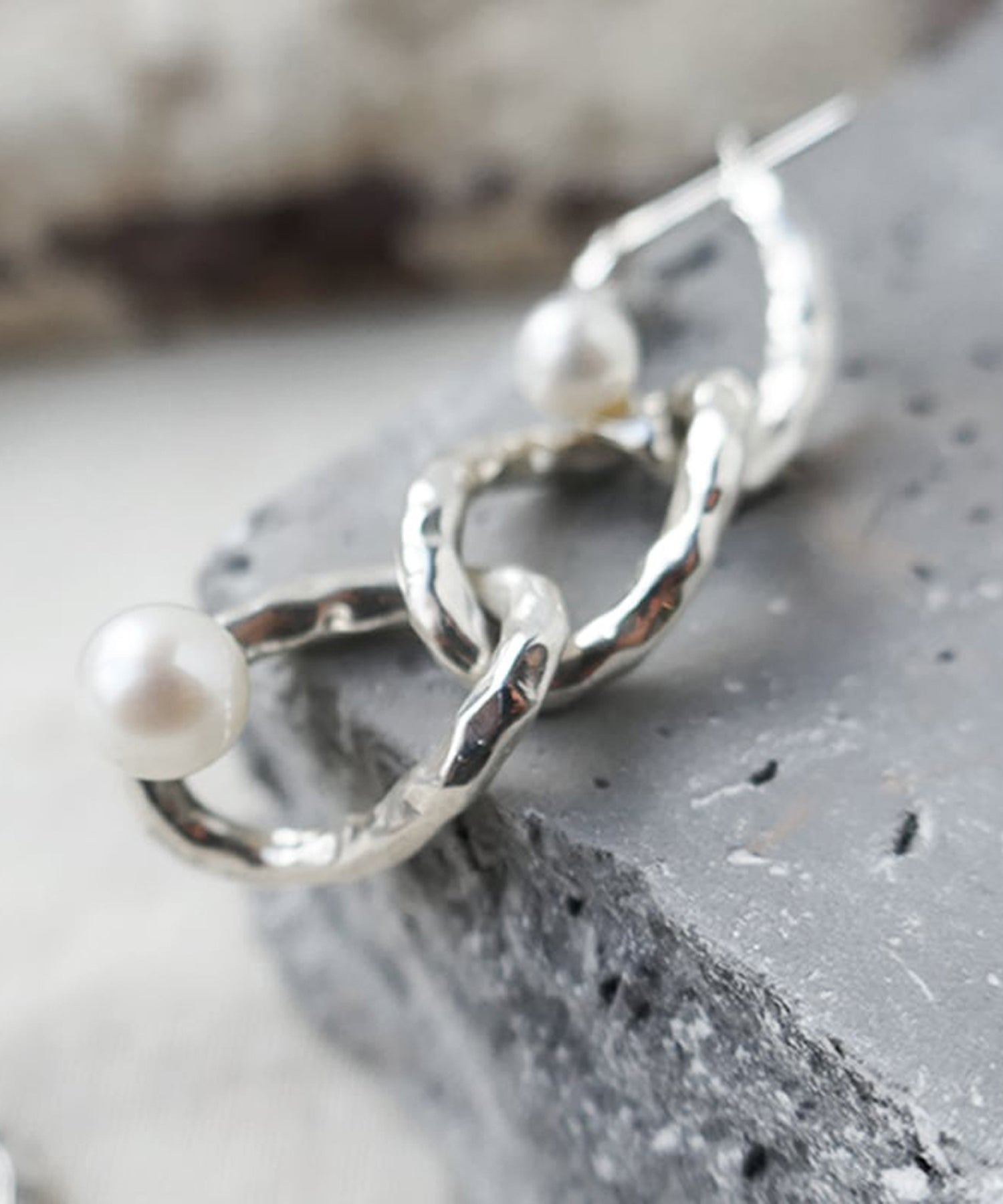 叩いたようなテクスチャーが魅力的な大きめのチェーンピアス。