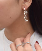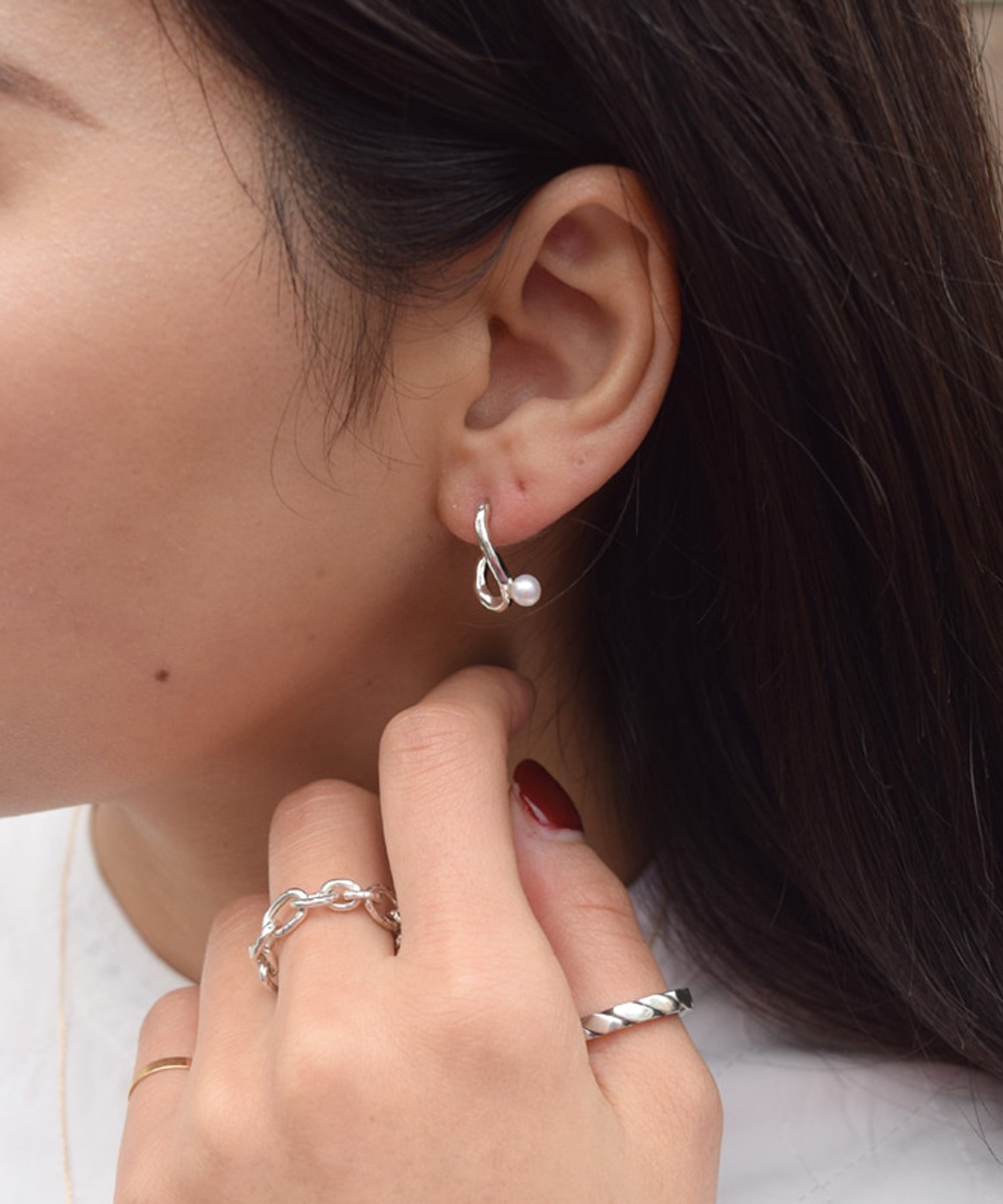 サイズ違いのパールが2石ついていて少しだけかわいらしい印象に。