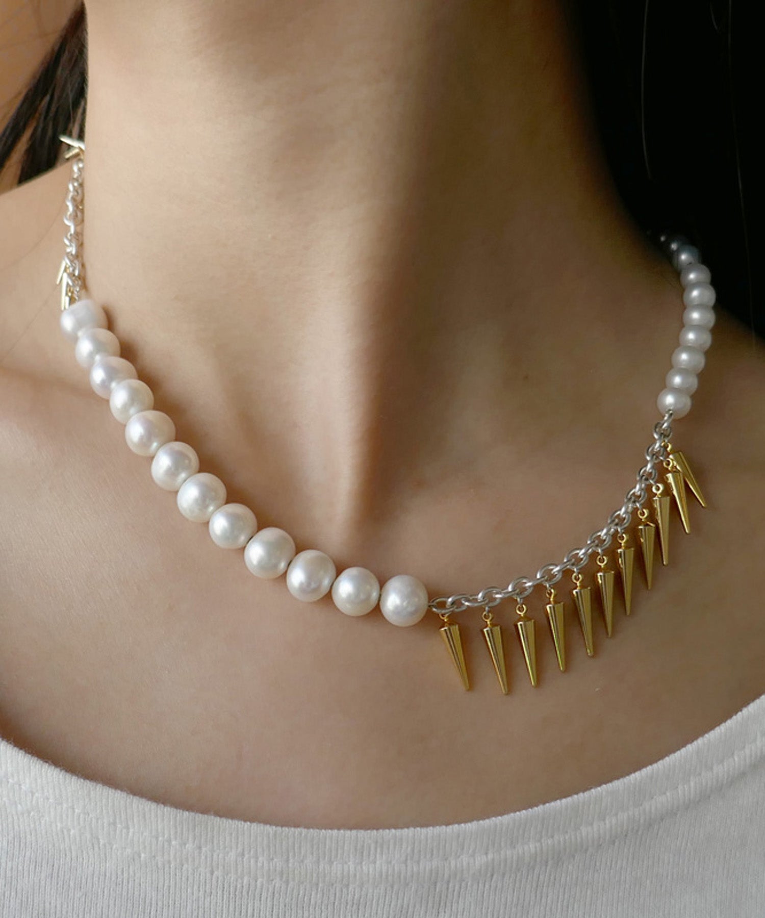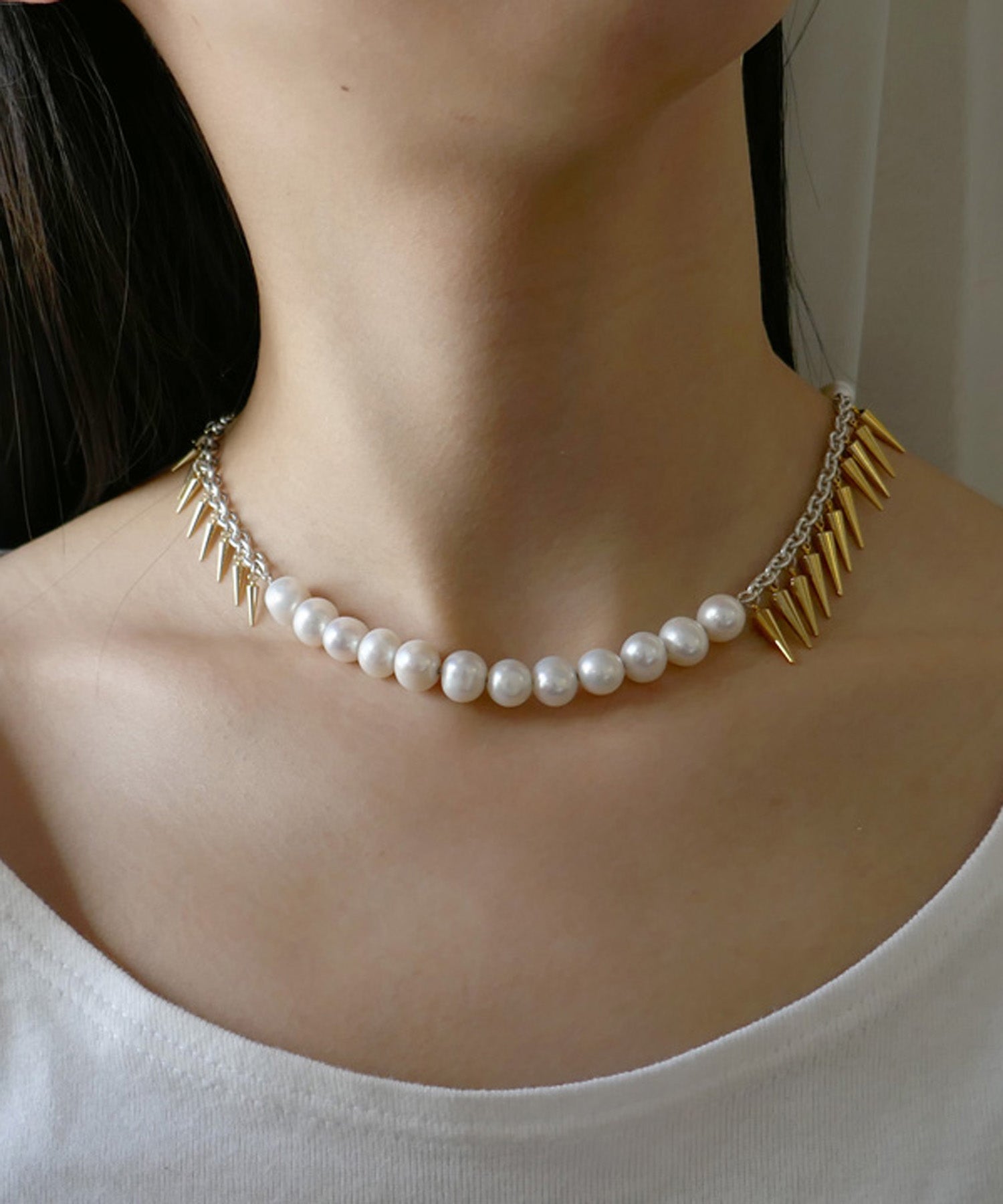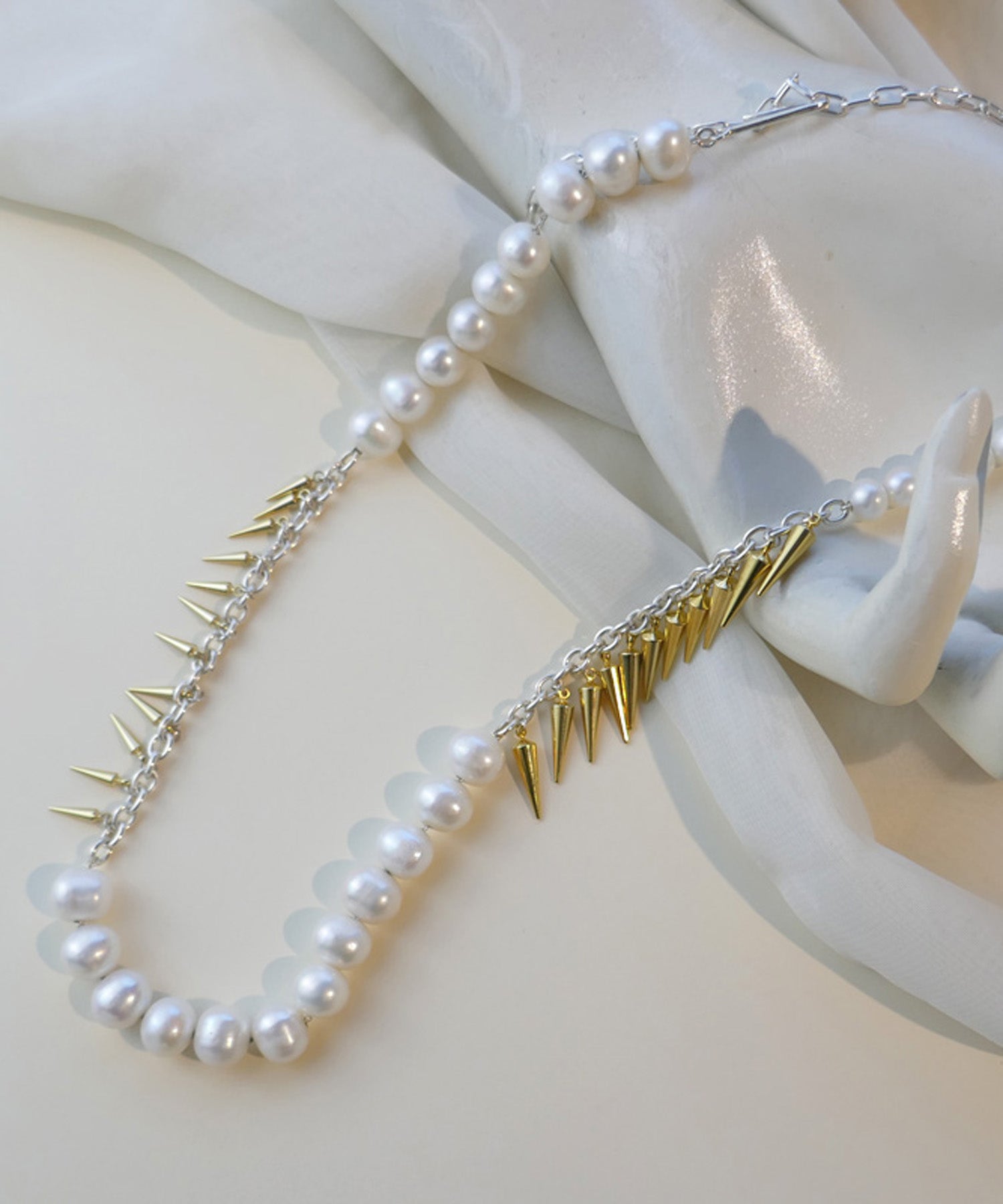 大小異なるパールとスタッズを配置し、デコラティブに仕上げました。