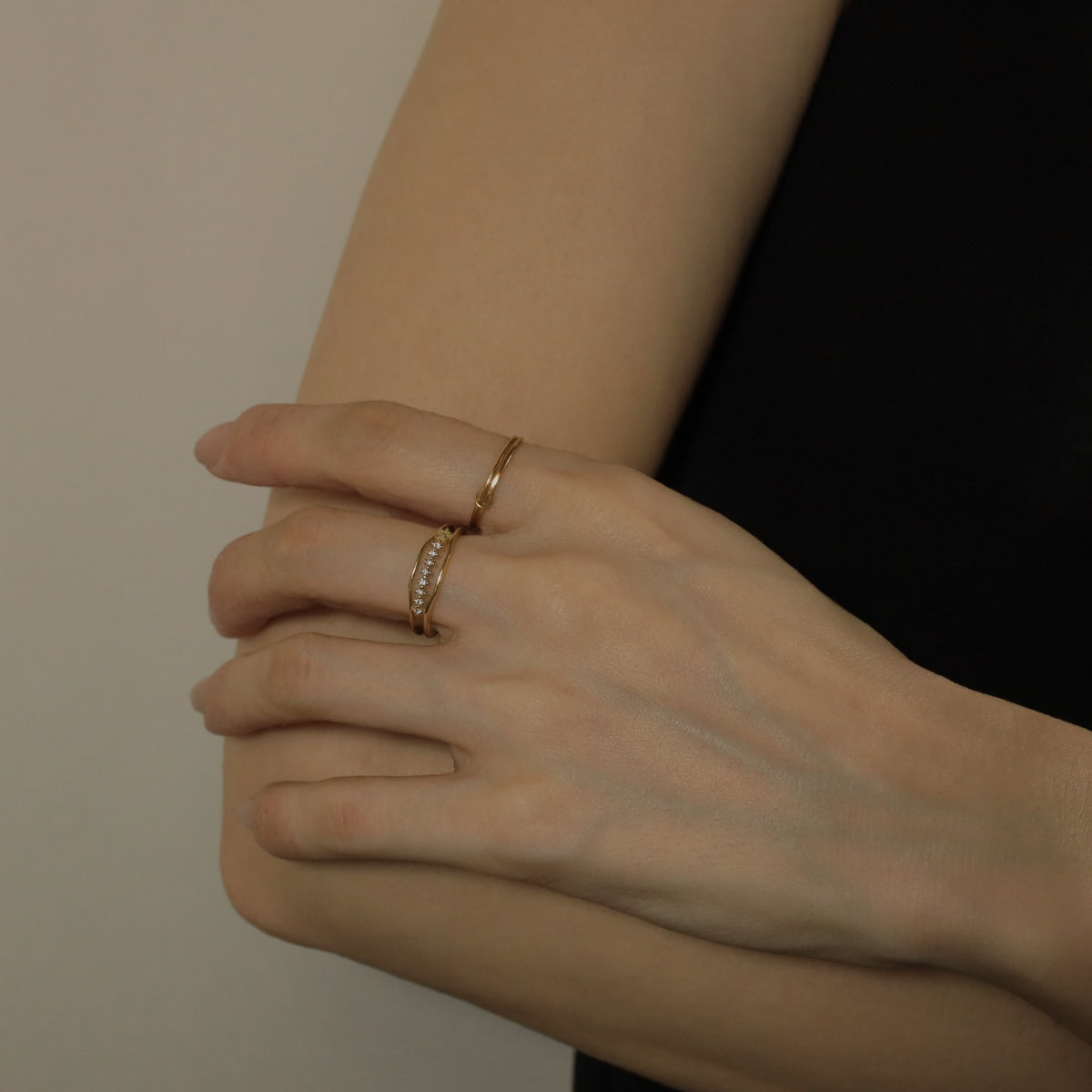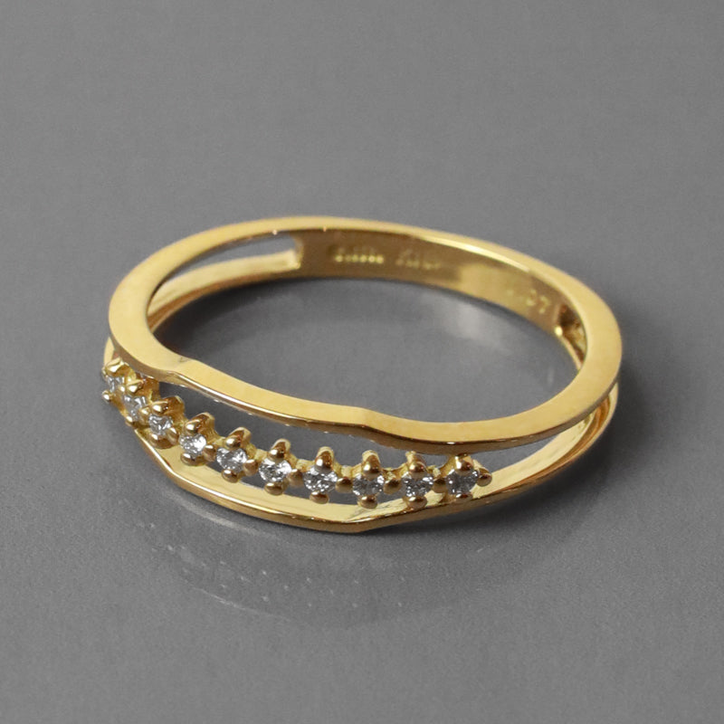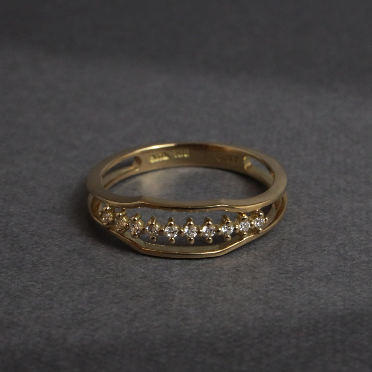 ダイヤモンドのレースのような透け感が美しいゴールドリング。