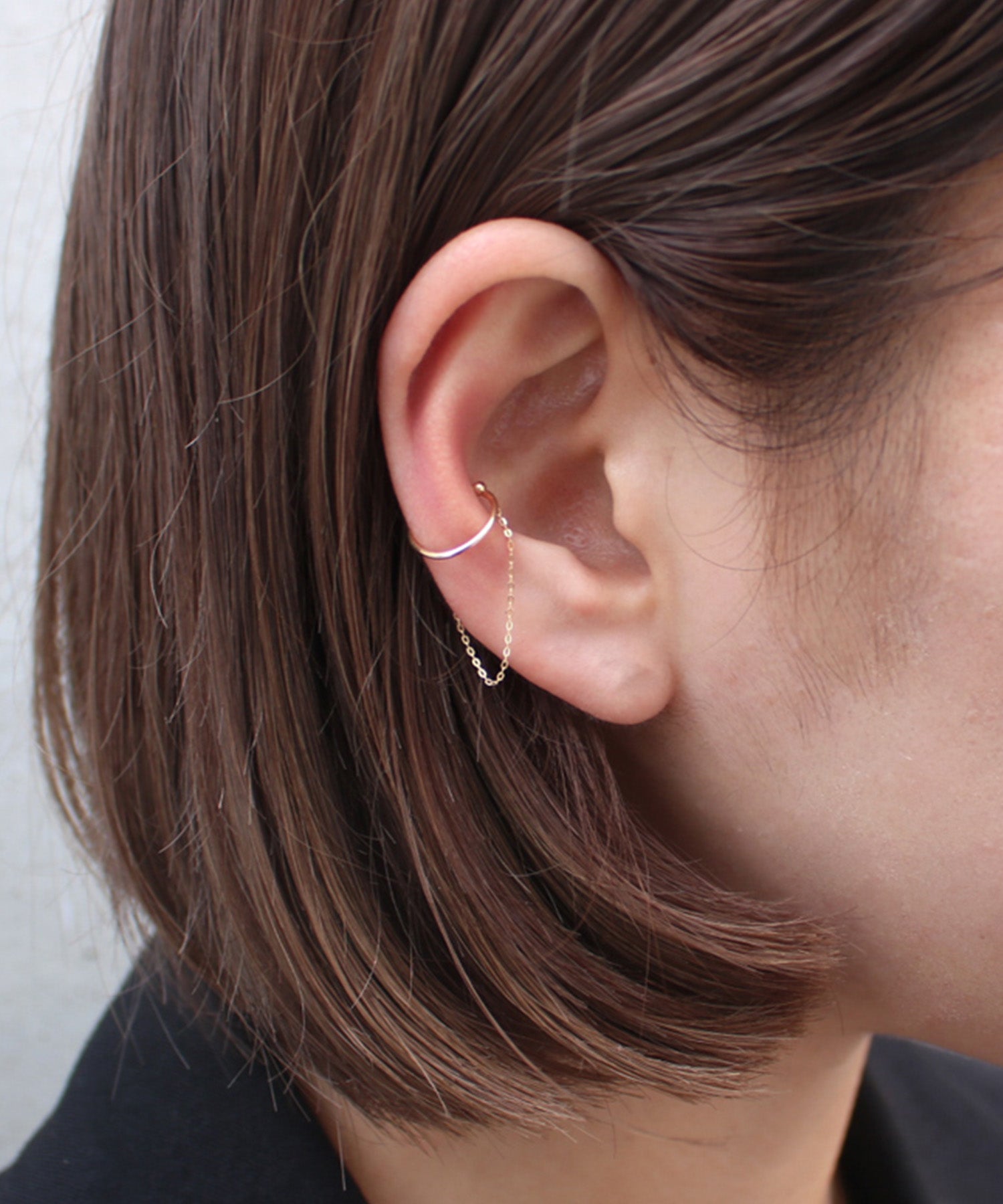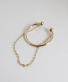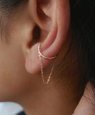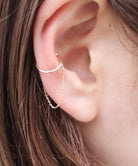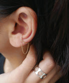 チェーンとアームを組み合わせた、2連のゴールドイヤーカフ。