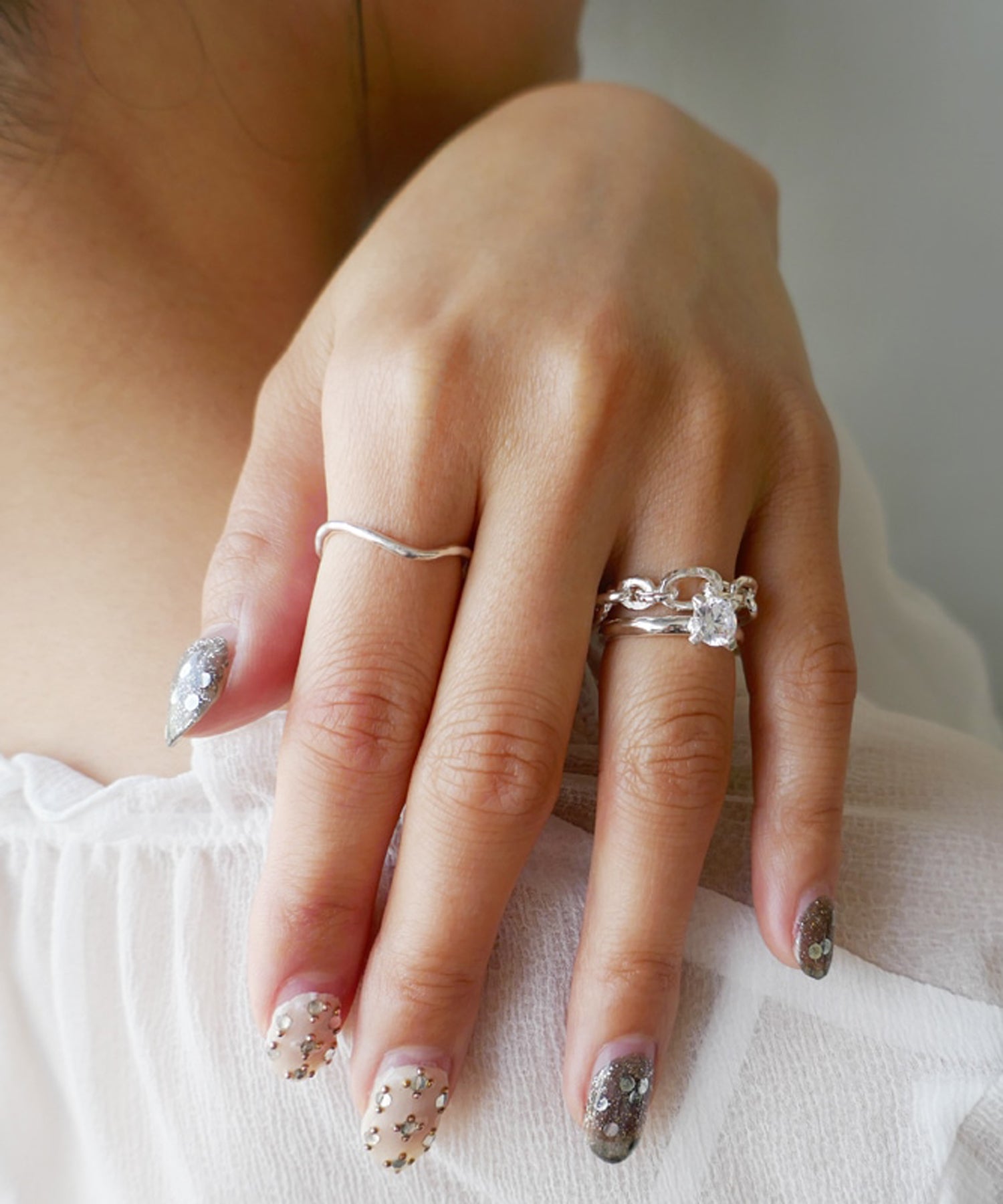 日々のスタイルにもなじむサイズのキュービックジルコニアと細身のアームで重ね着けにもおすすめです。