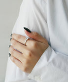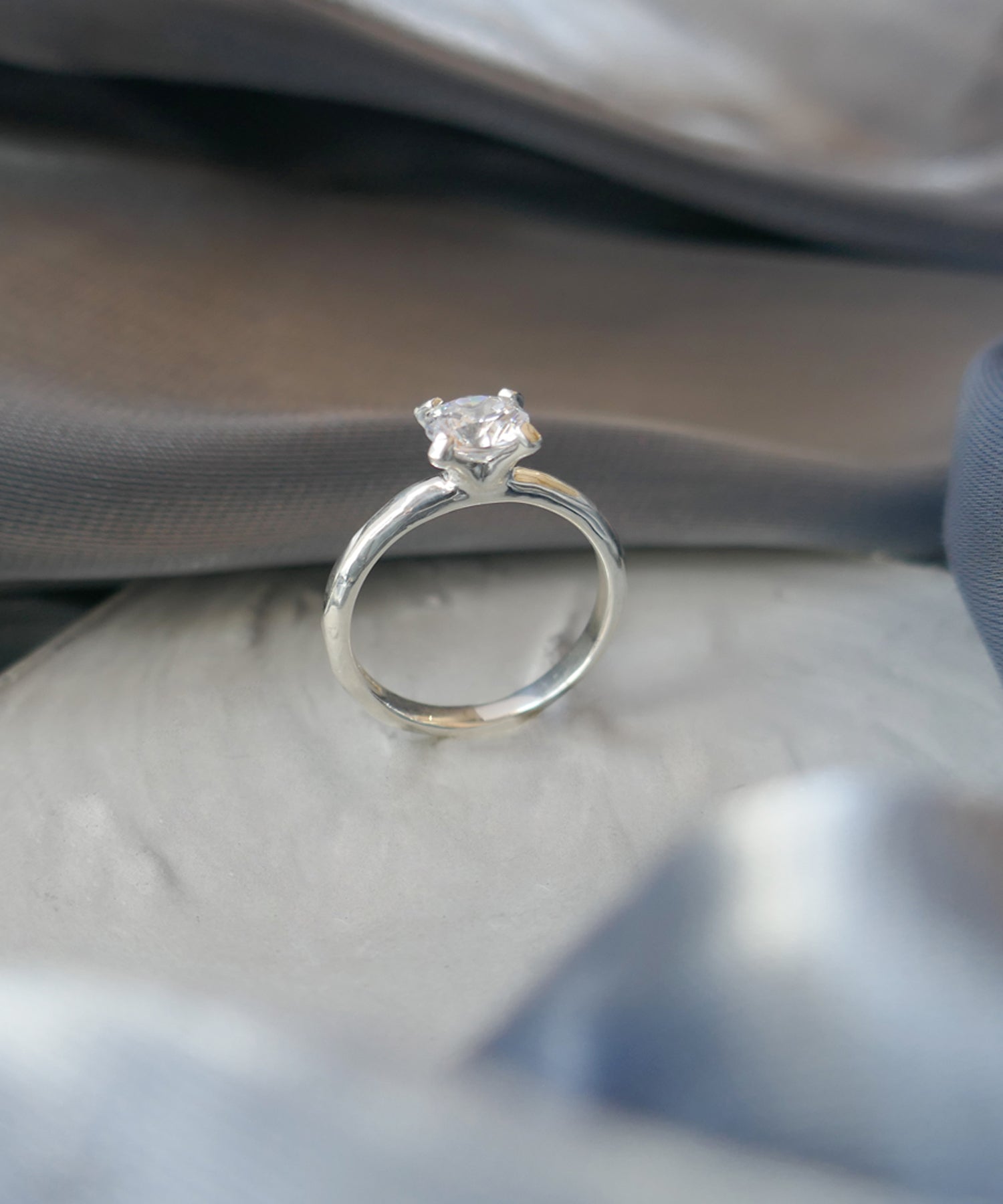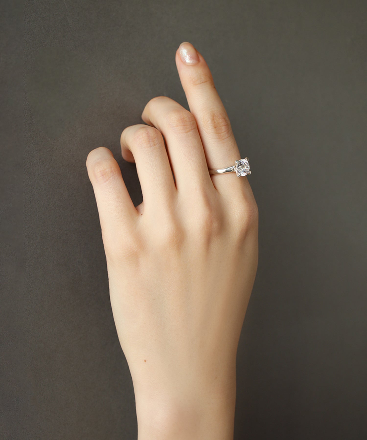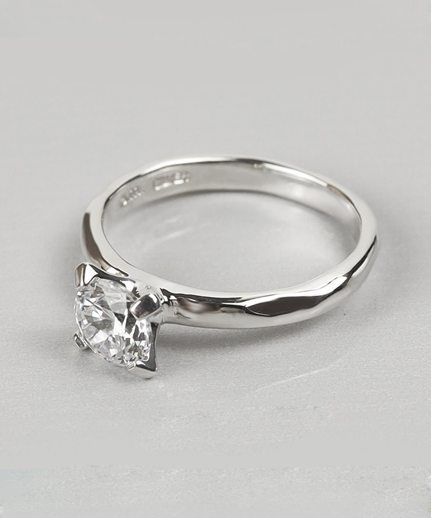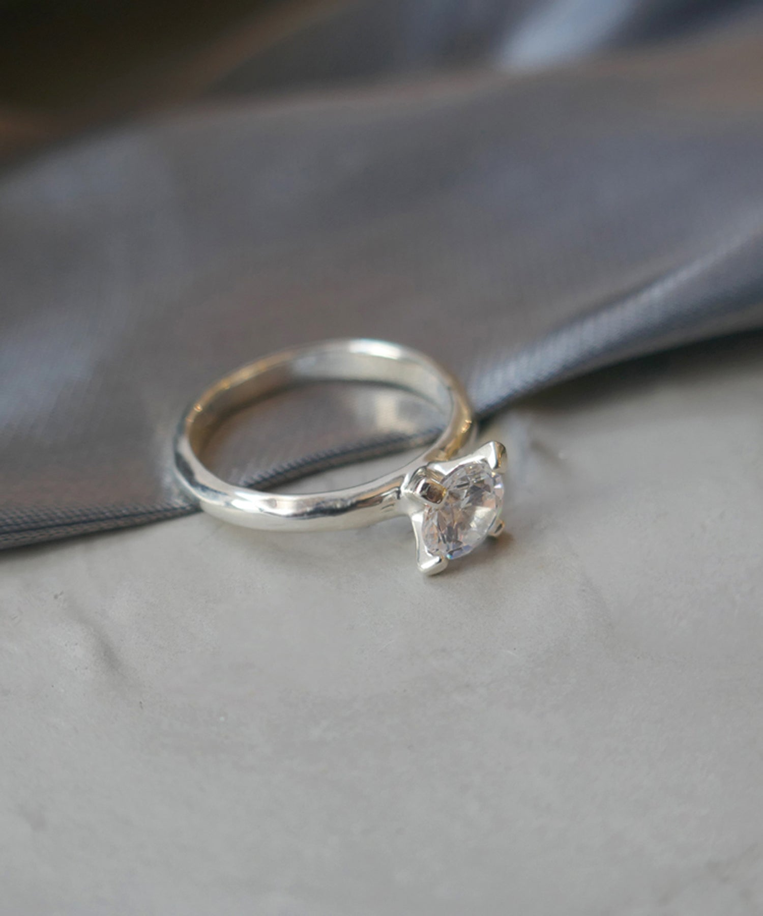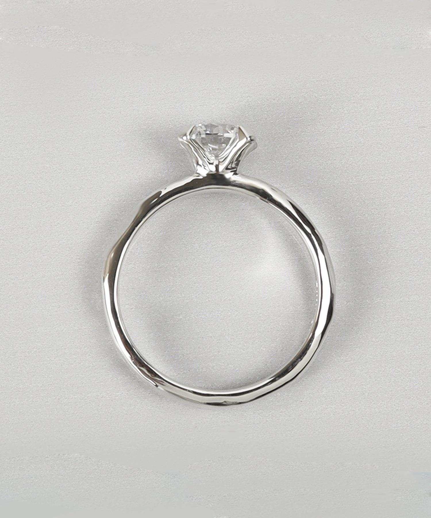 一粒のキュービックジルコニアを立て爪でセッティングしたシンプルなデザインのリング。四方から光が入りキュービックジルコニアの輝きを最も楽しめるデザインです。