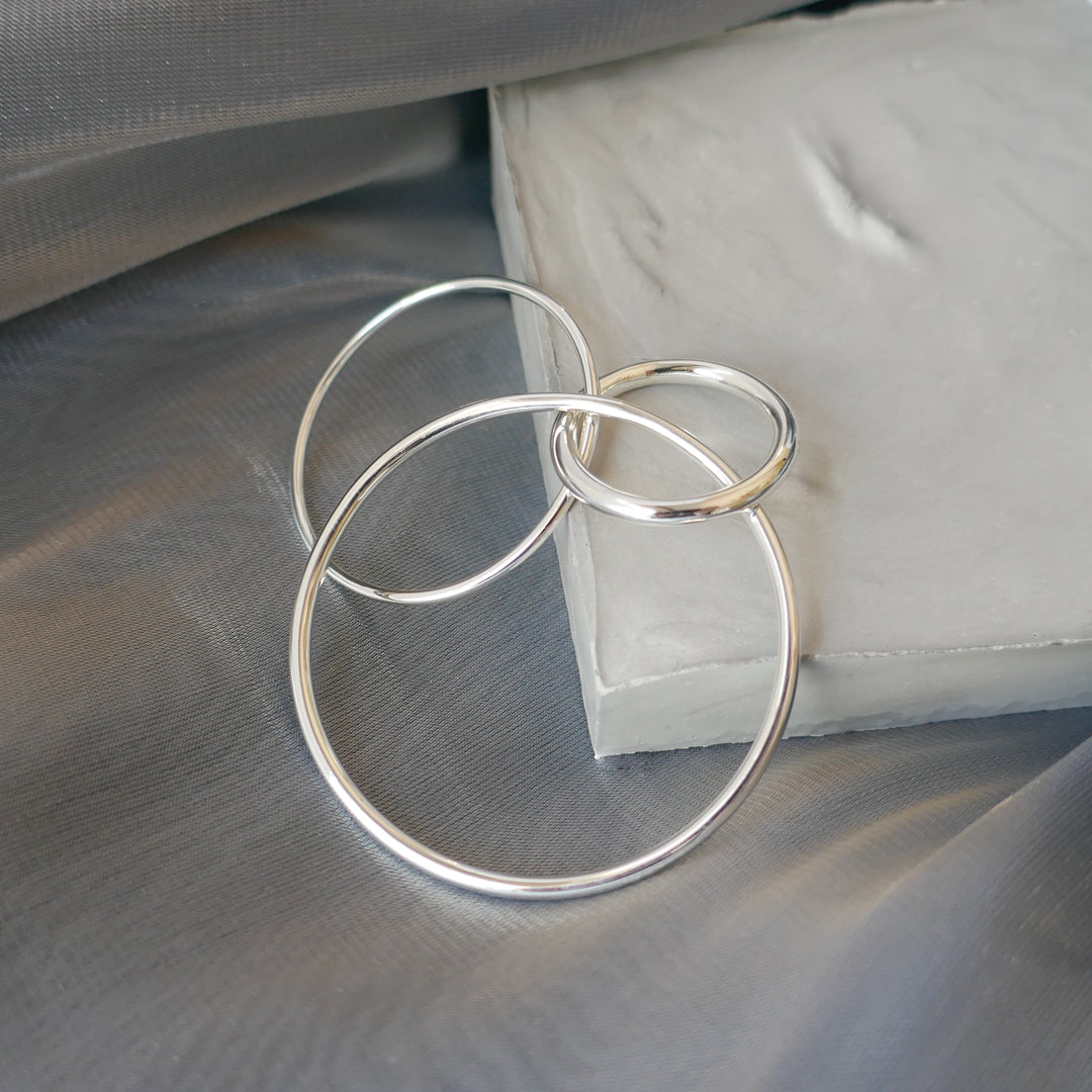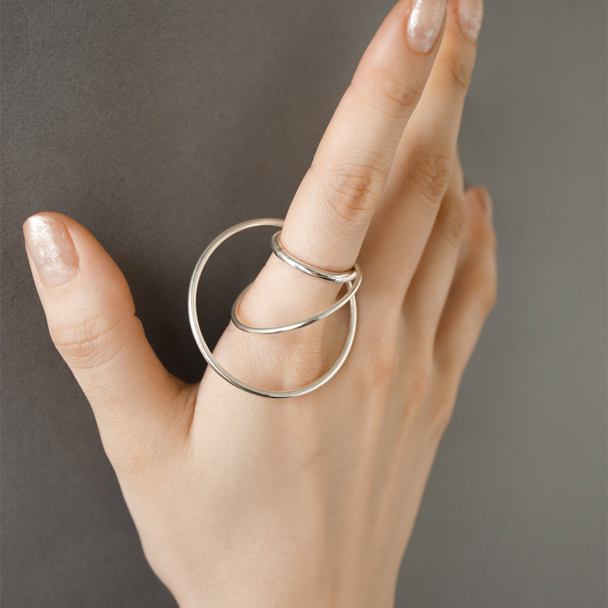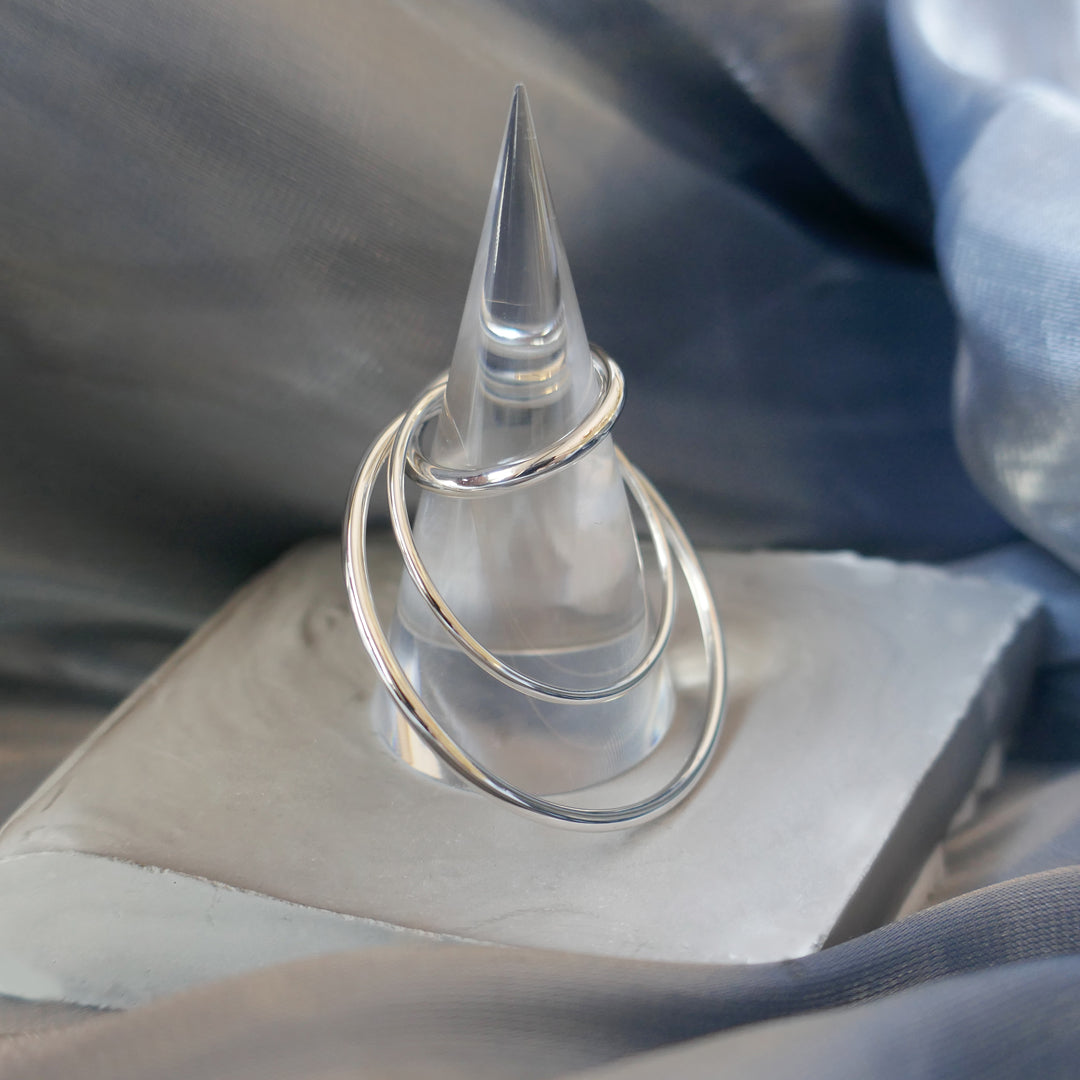 バウンドする光の軌道を3本の異なる大きさのリングで表現した