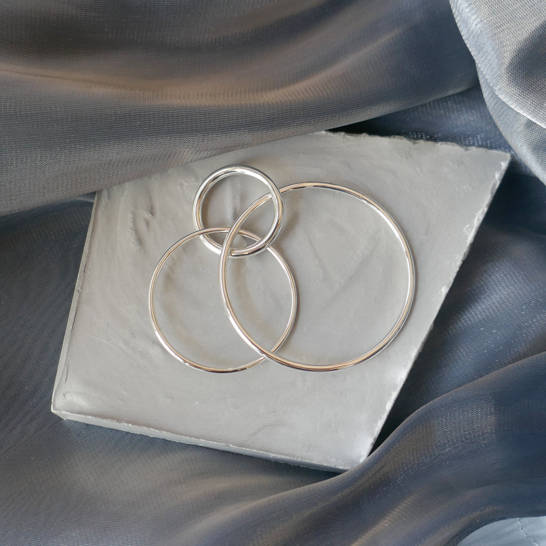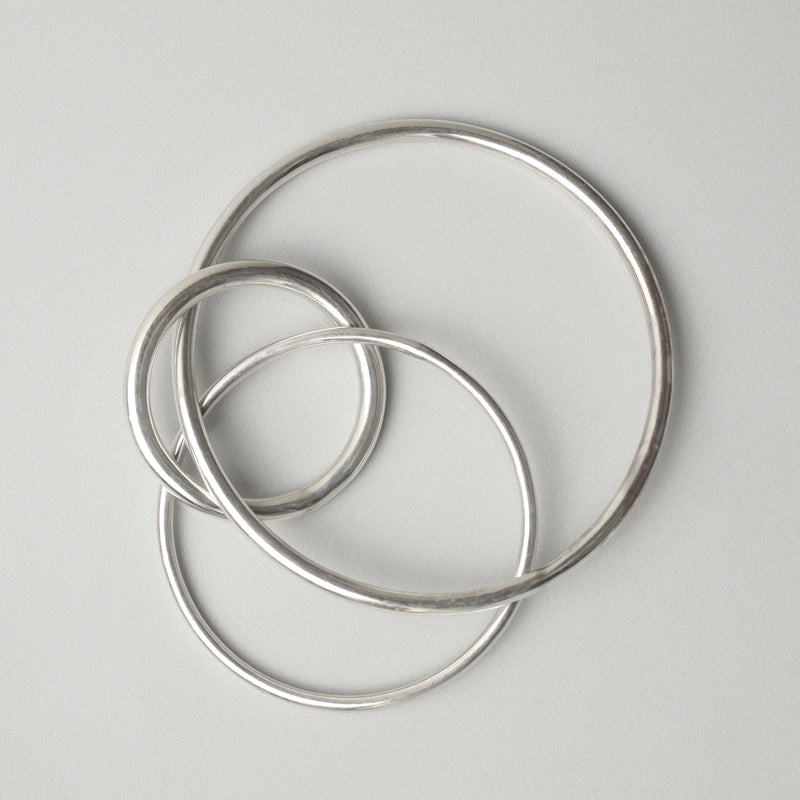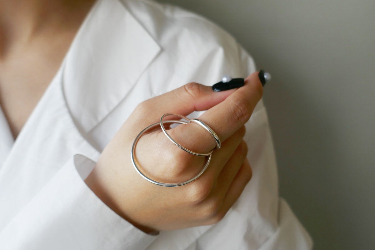 バウンドする光の軌道を3本の異なる大きさのリングで表現した