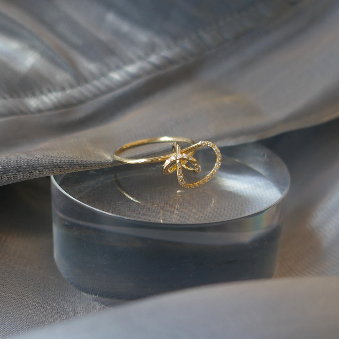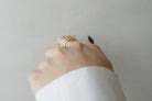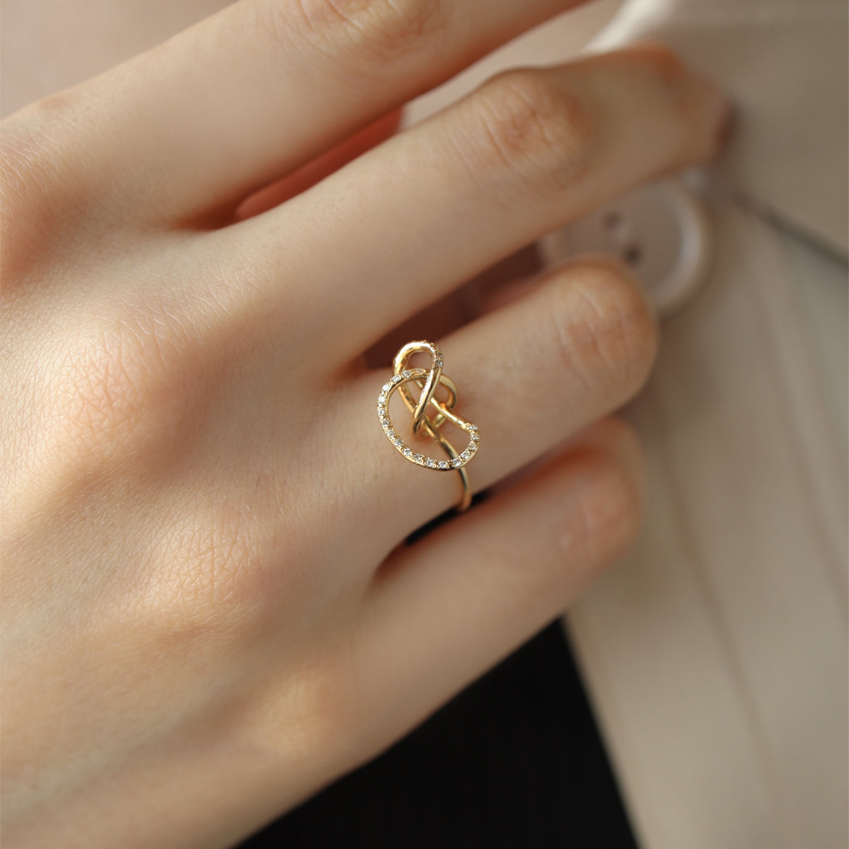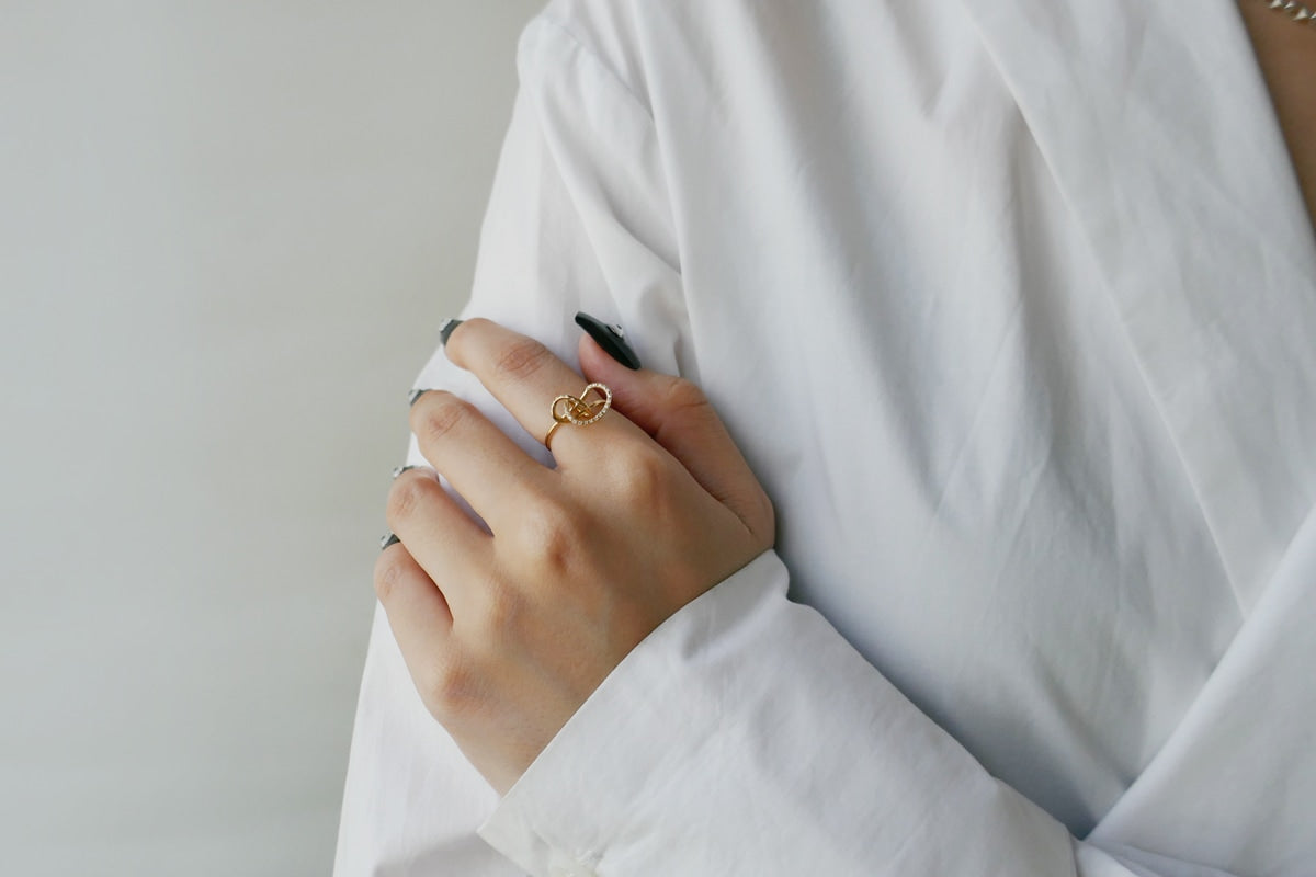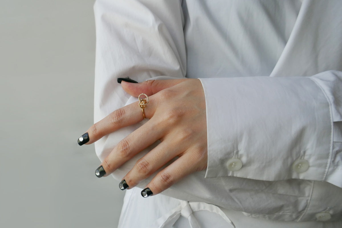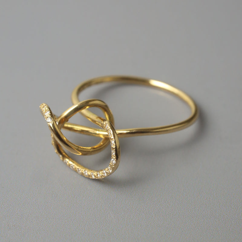 大胆なフォルムに上品なゴールドリング。エッジを効かせたゴールドとダイヤモンドの組み合わせが