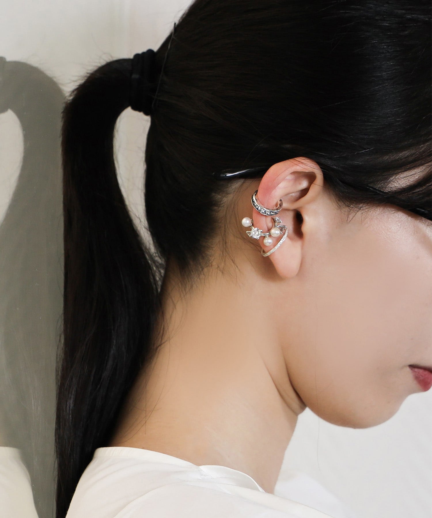 耳に沿うように全体にデザインが施されているおり、どの角度から見ても美しく華やかな印象を与えます