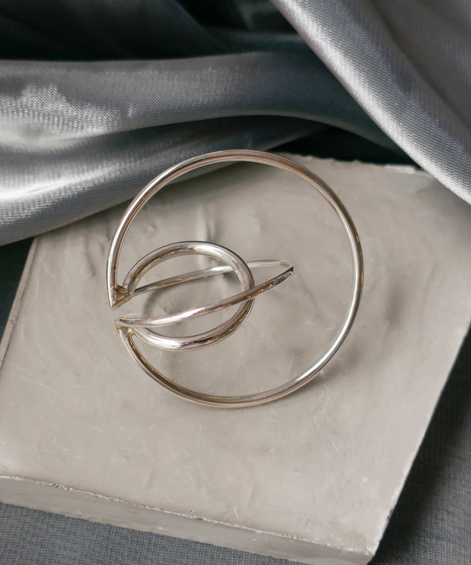 バウンドする光の軌道を3本の異なる大きさのリングで表現した