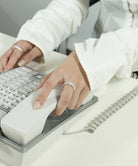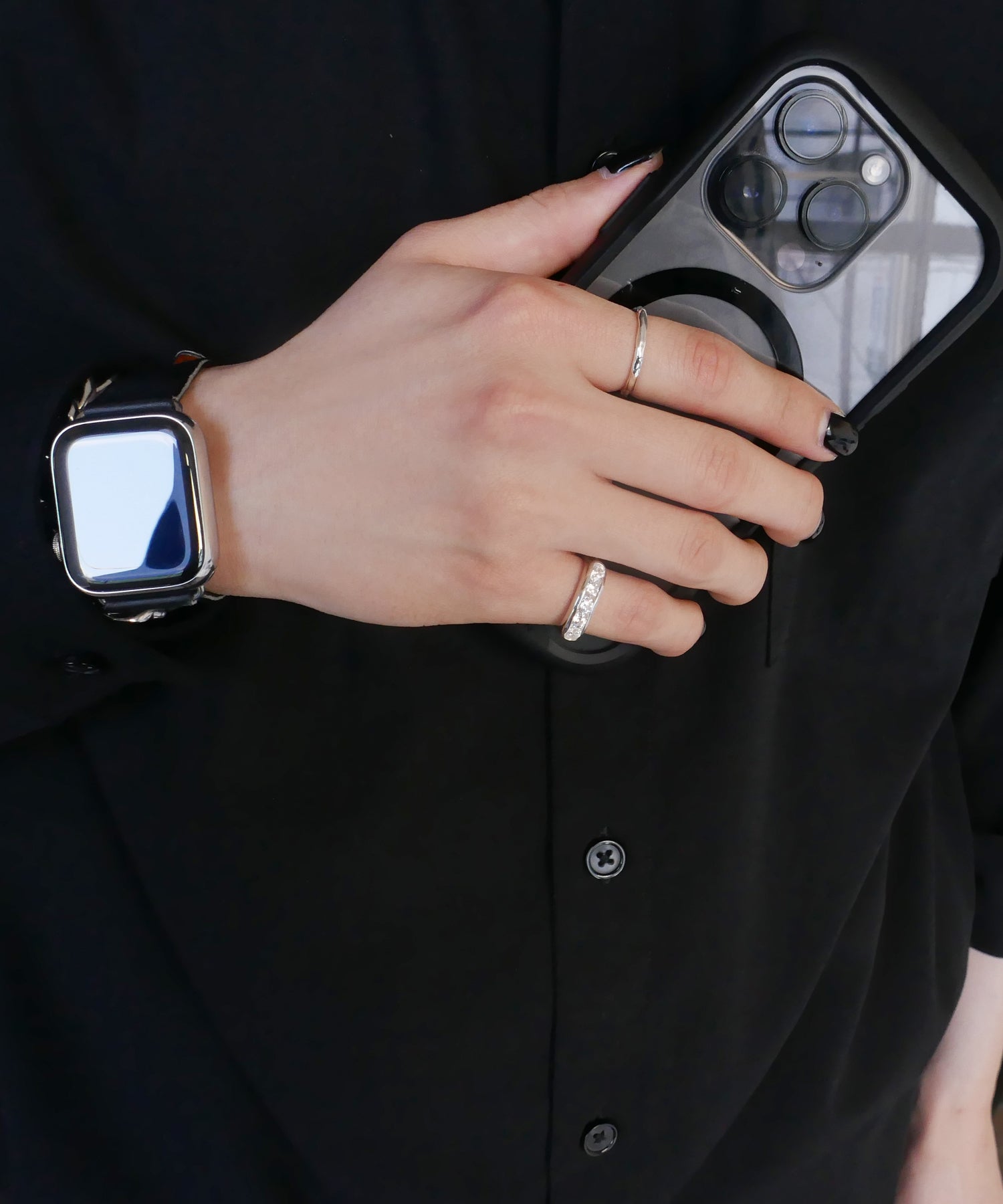 アームのゆるやかなカーブは、リングを重ねやすくするためのデザインなので1本ではもちろん、スタッキングジュエリーとしてもお楽しみください。