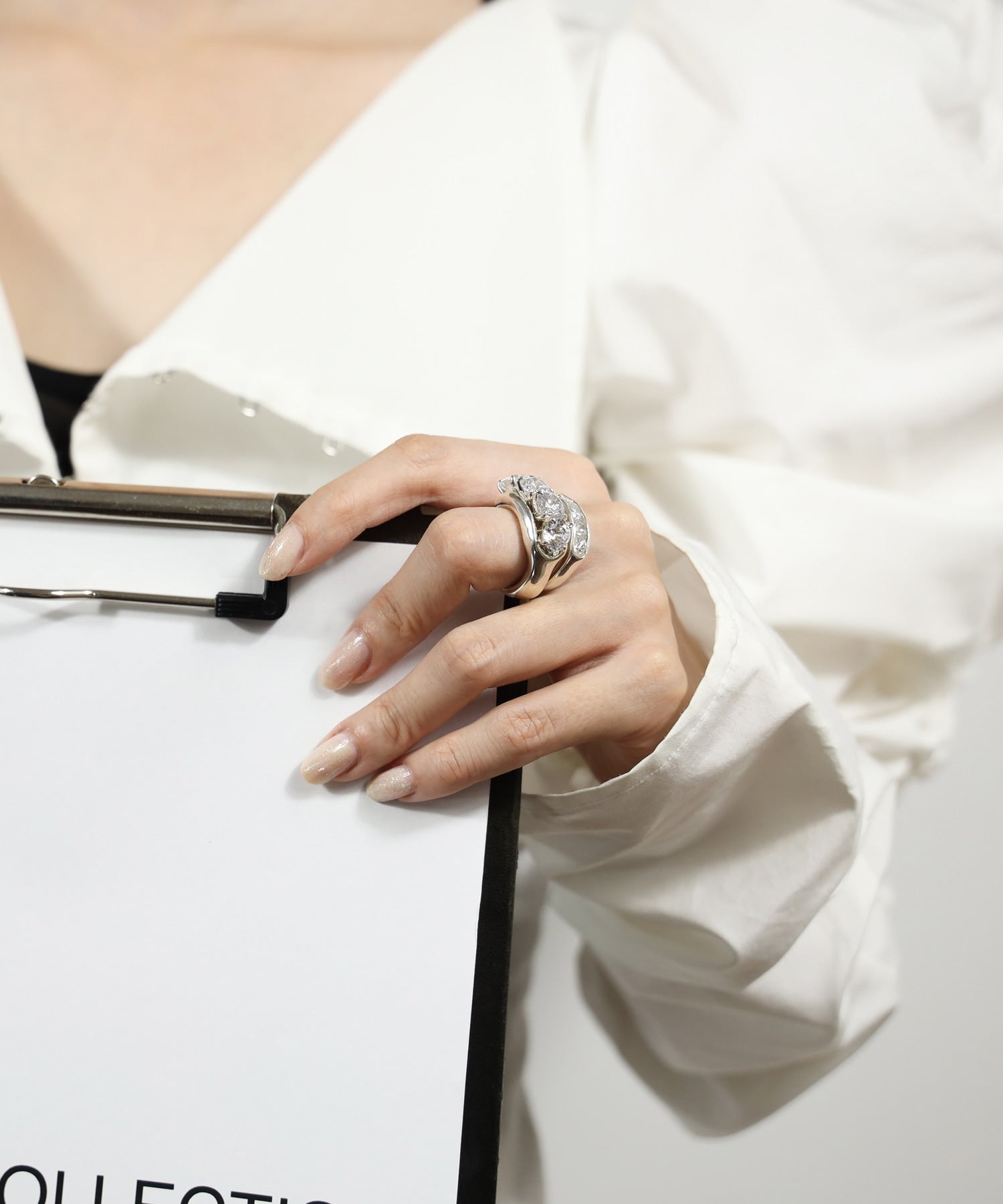 中央にセッティングされた5つのキュービックジルコニアが輝くリング。