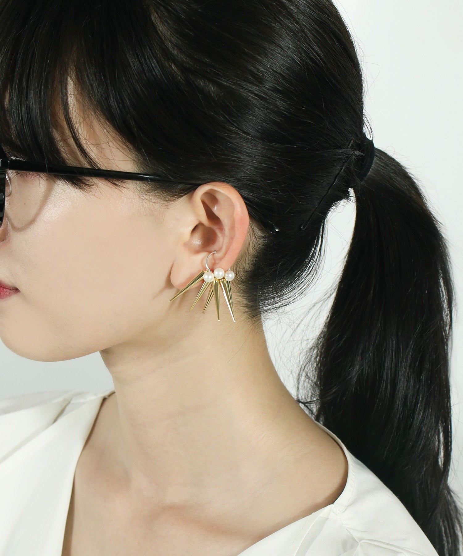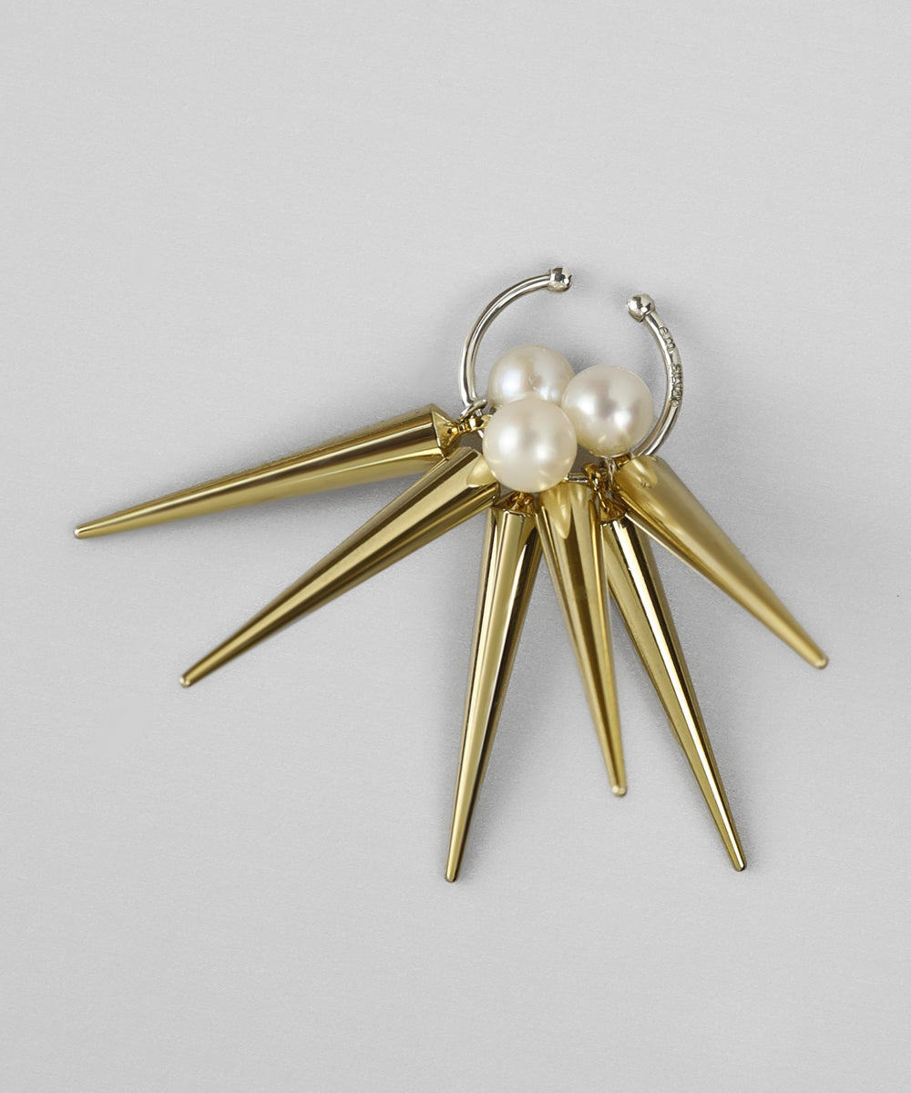 スタッズの間にセッティングされたパールはハードな印象をやわらげ、