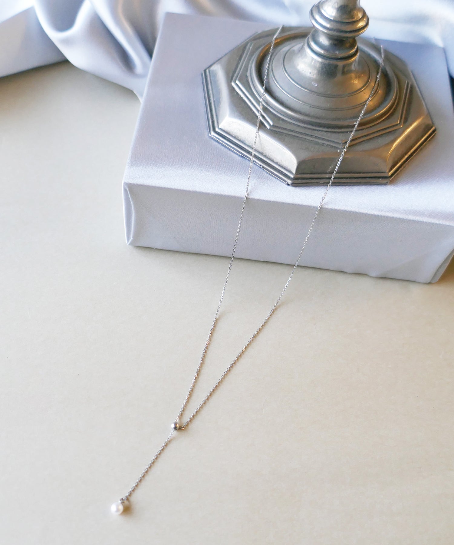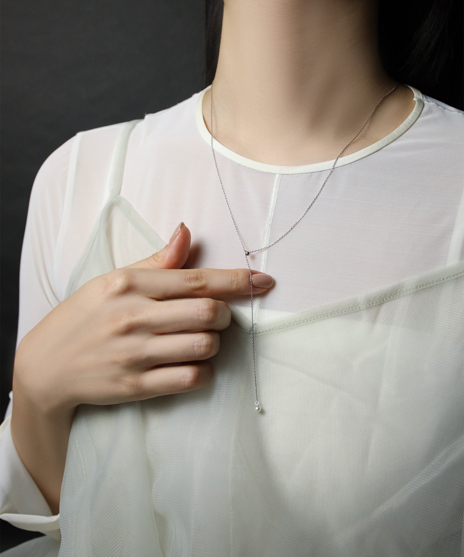 チェーンの先端にはアコヤパールをセッティングし