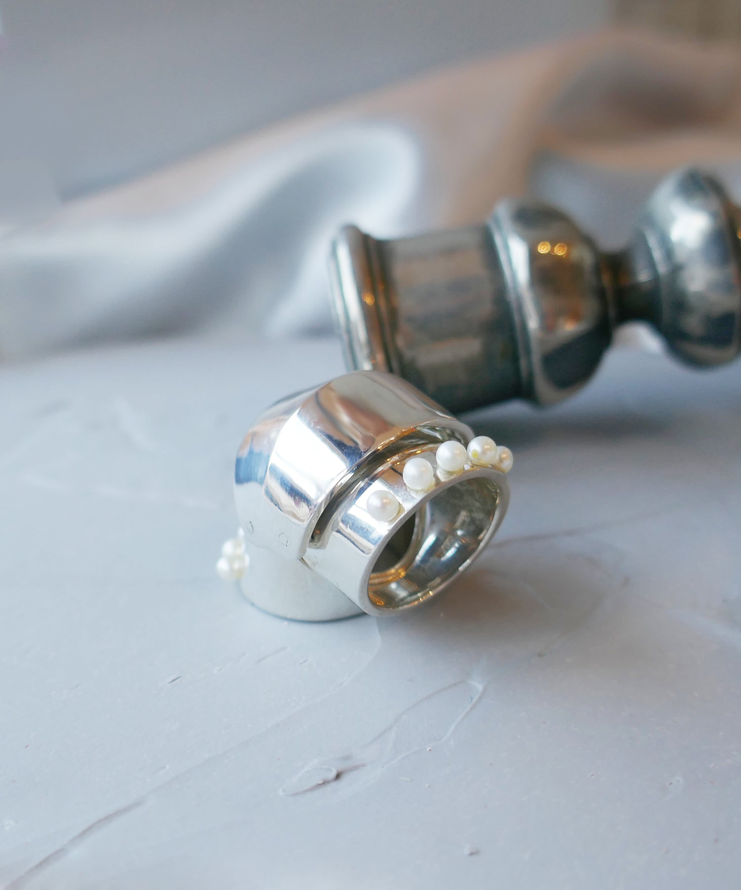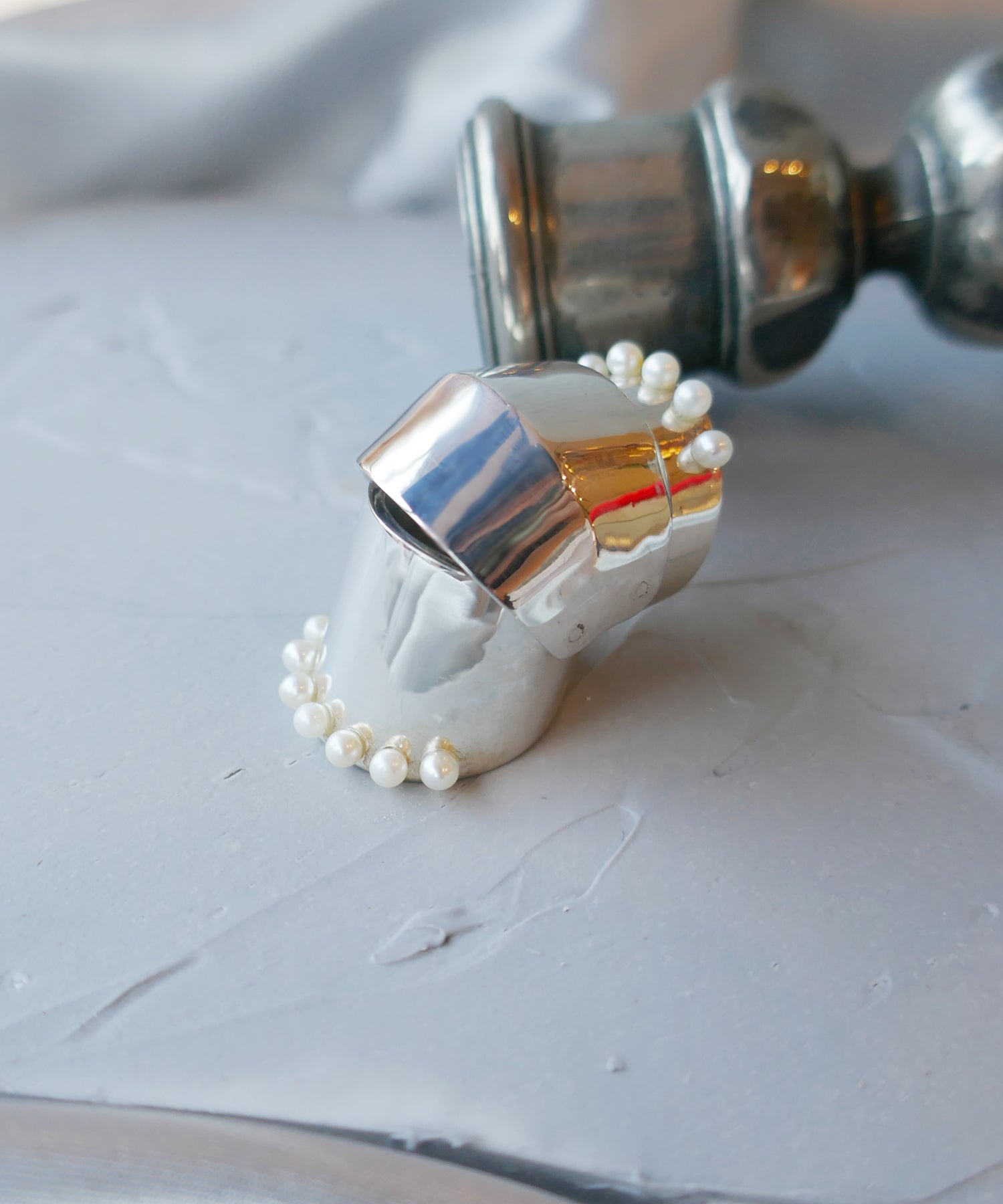 リングの上下にセッティングされたパールは