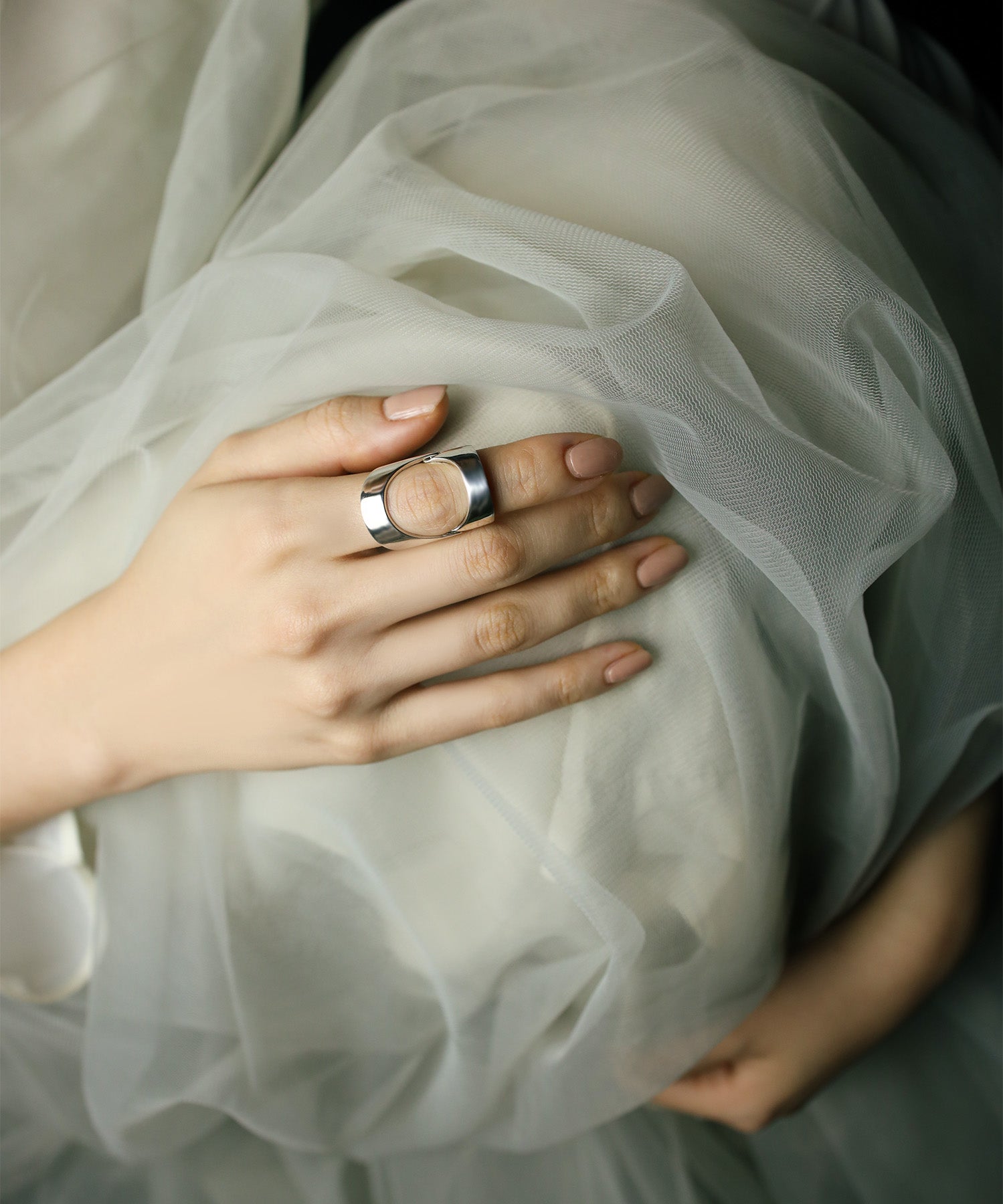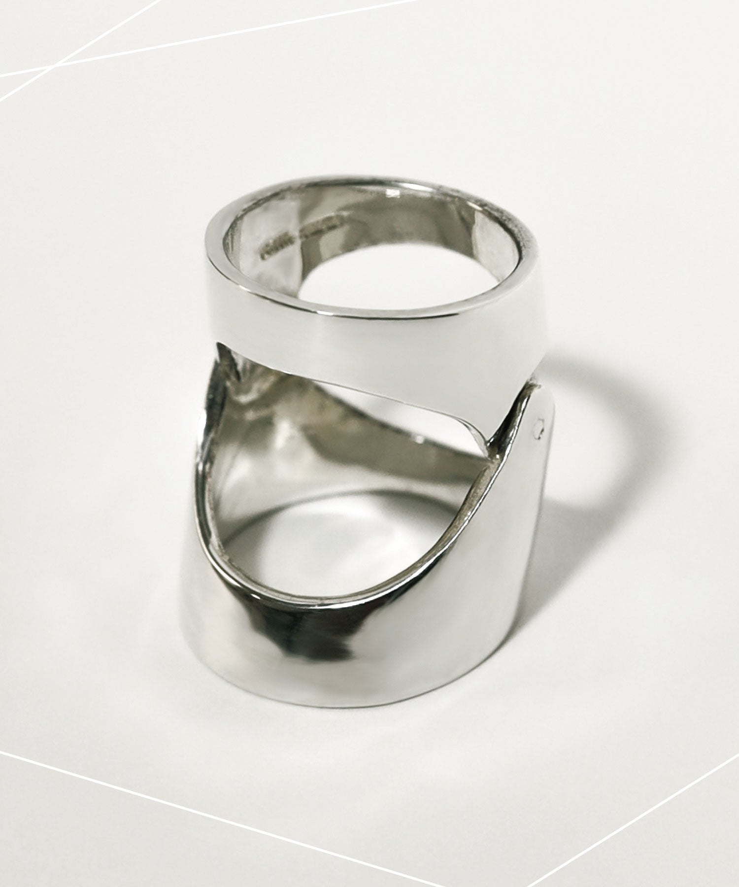 中世の鎧のフォルムを彷彿とさせるアーマーリング。関節部分が削ぎ落されたデザインは