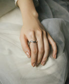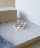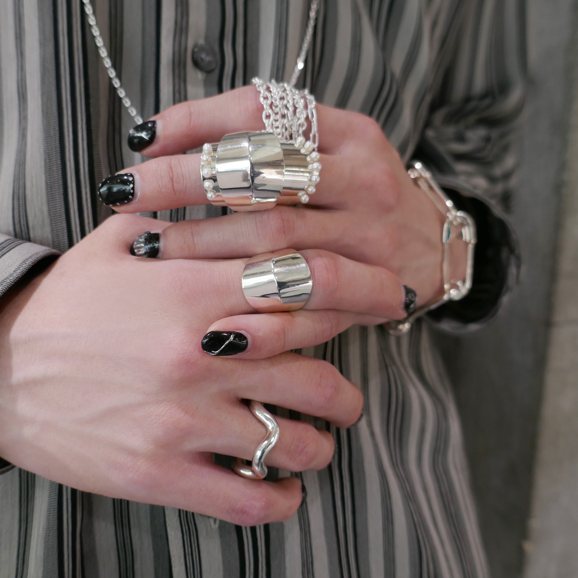 幾何学的なデザインのメタルリング。程よいボリューム感は指に馴染み緩やかな曲線のラインは