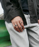 同じデザインのリングを重ねたコーディネートもおすすめです。