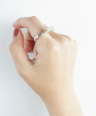 フラットなデザインがシンプルながらインパクトを与えるリング。