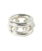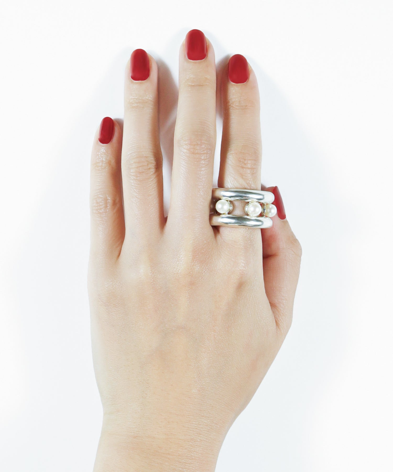 2本のリングの間に、淡水パールを等間隔にセッティングした