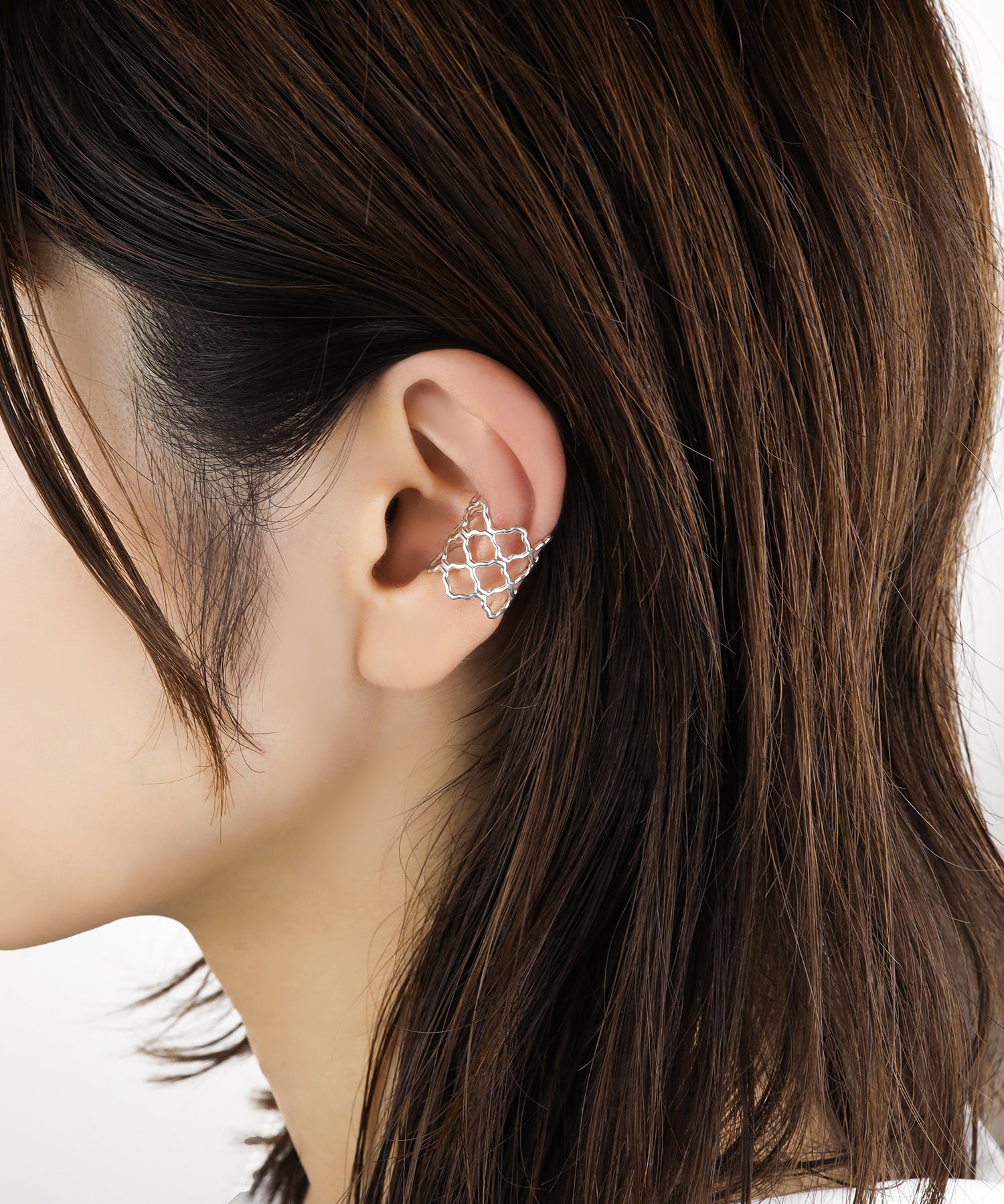いくつものレリーフが連なるようなデザインのイヤーカフ。
