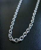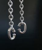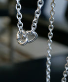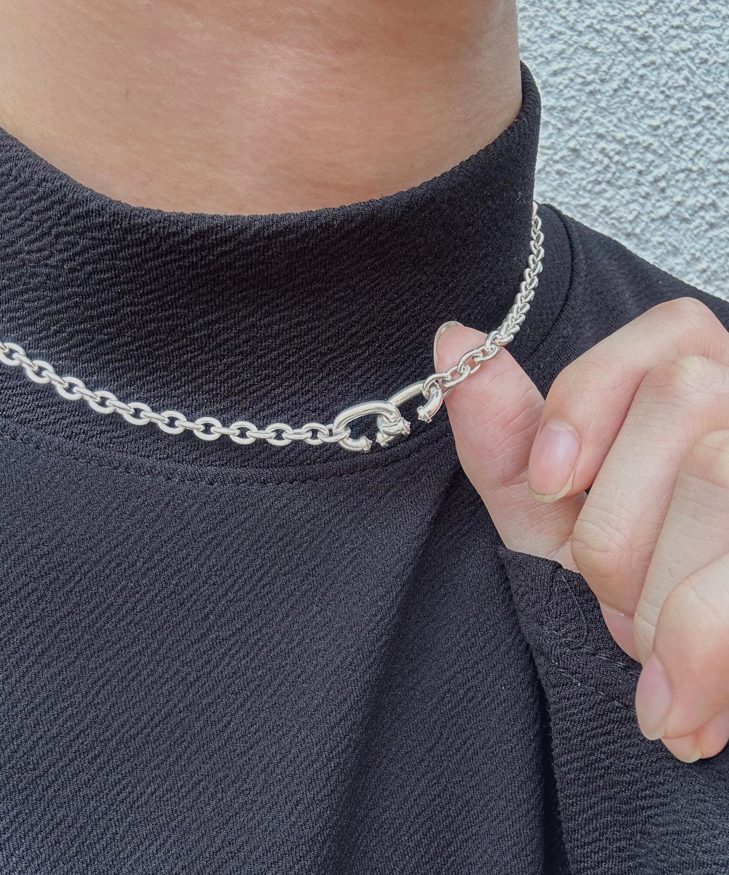 シルバーのボリュームネックレス。オリジナルチェーンの1駒を着脱する金具としてあしらい、デザインの主役にしています。