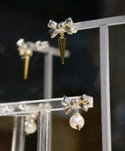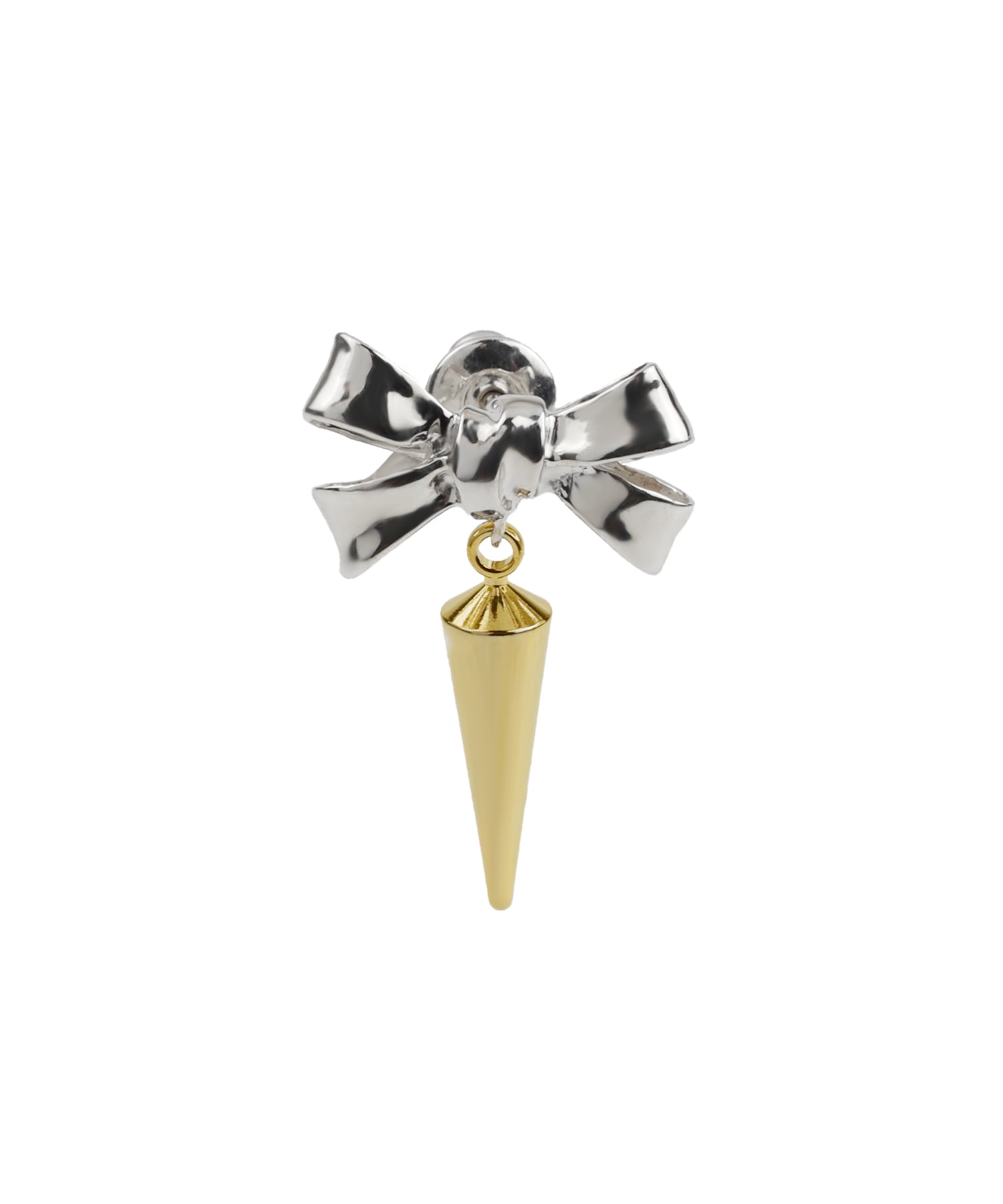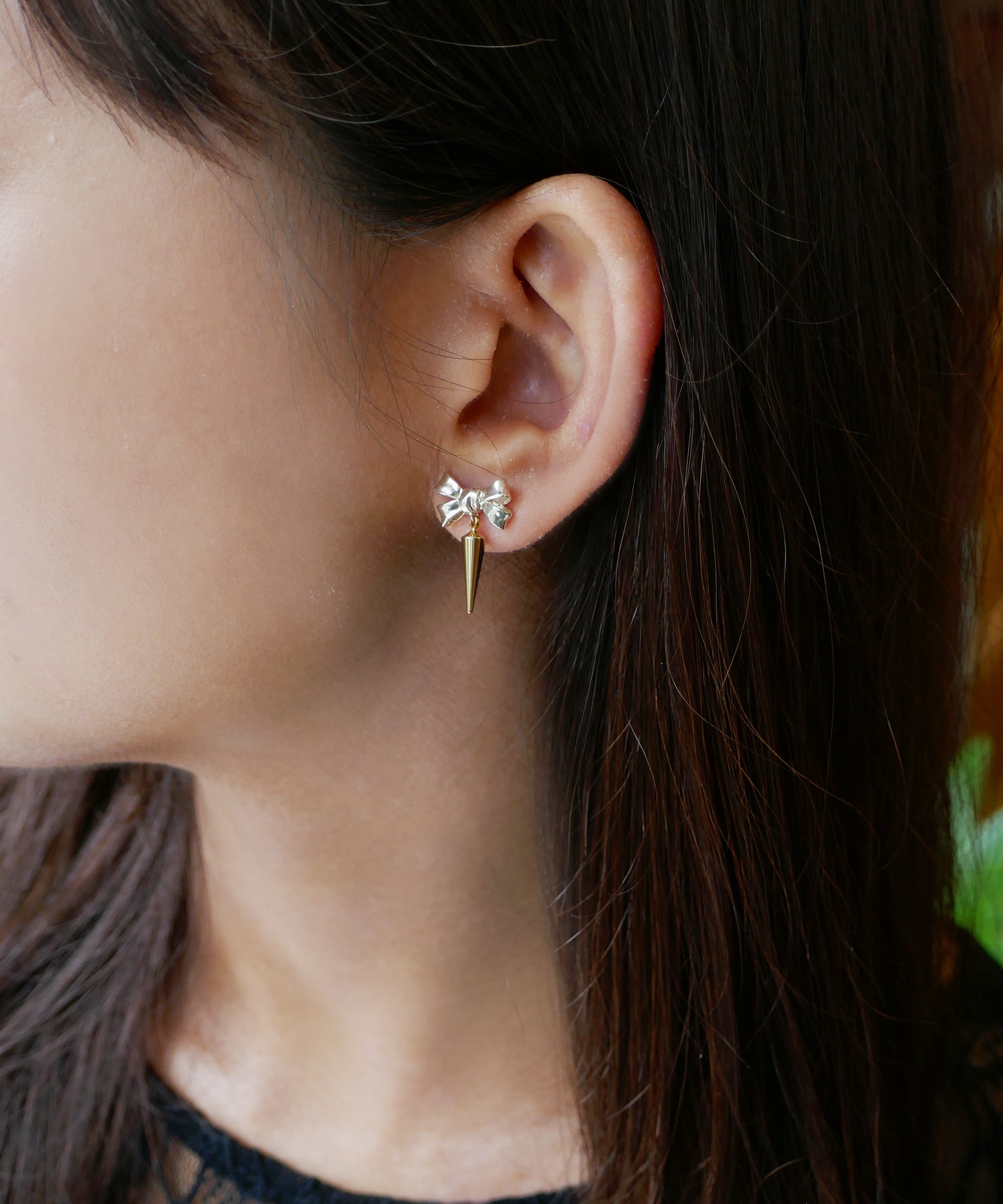 リボンとスパイクスタッズを組み合わせたシルバーピアス。
