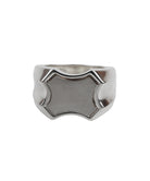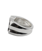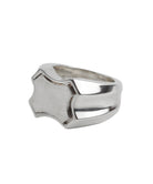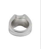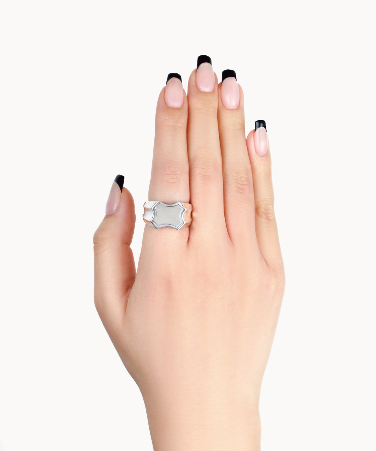 トップの印台部分は、レリーフ枠のようなシルエットの装飾を施したヘアライン加工のシルバーパーツを取り付けています。