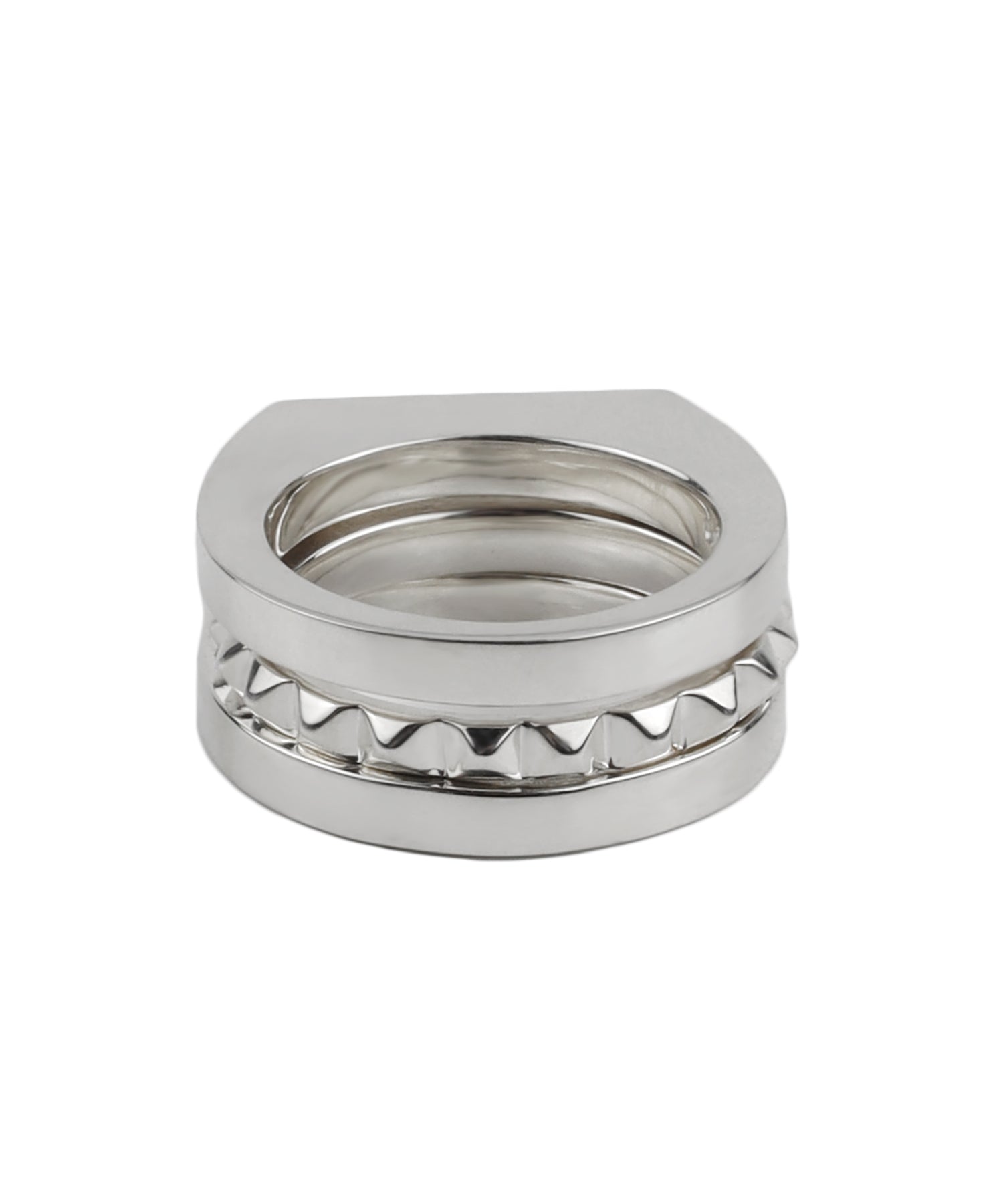 2つのパーツで構成されるこちらのリングは、センターのリングがセパレートできることで複数通りの着け方が可能です。