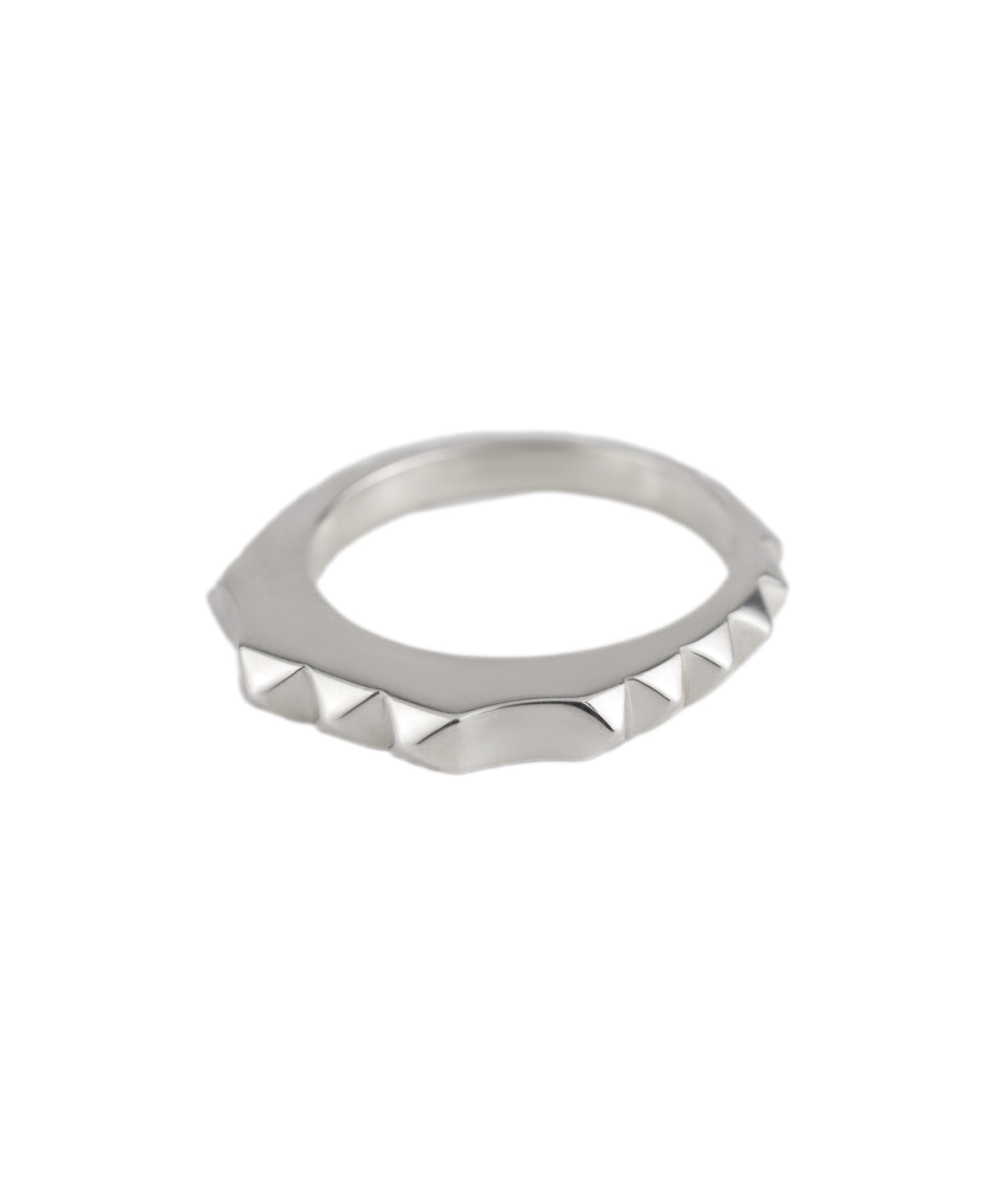 全体的に直線で仕立てたソリッドなデザインに、スタッズモチーフの凹凸がアクセントになっています。