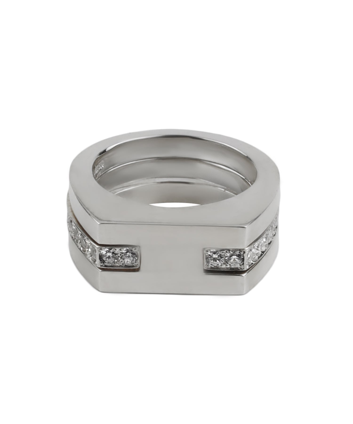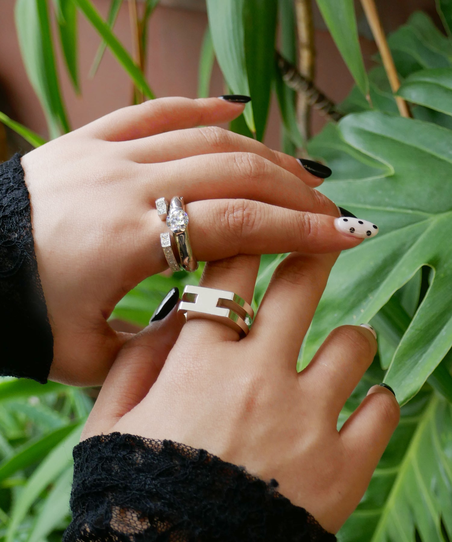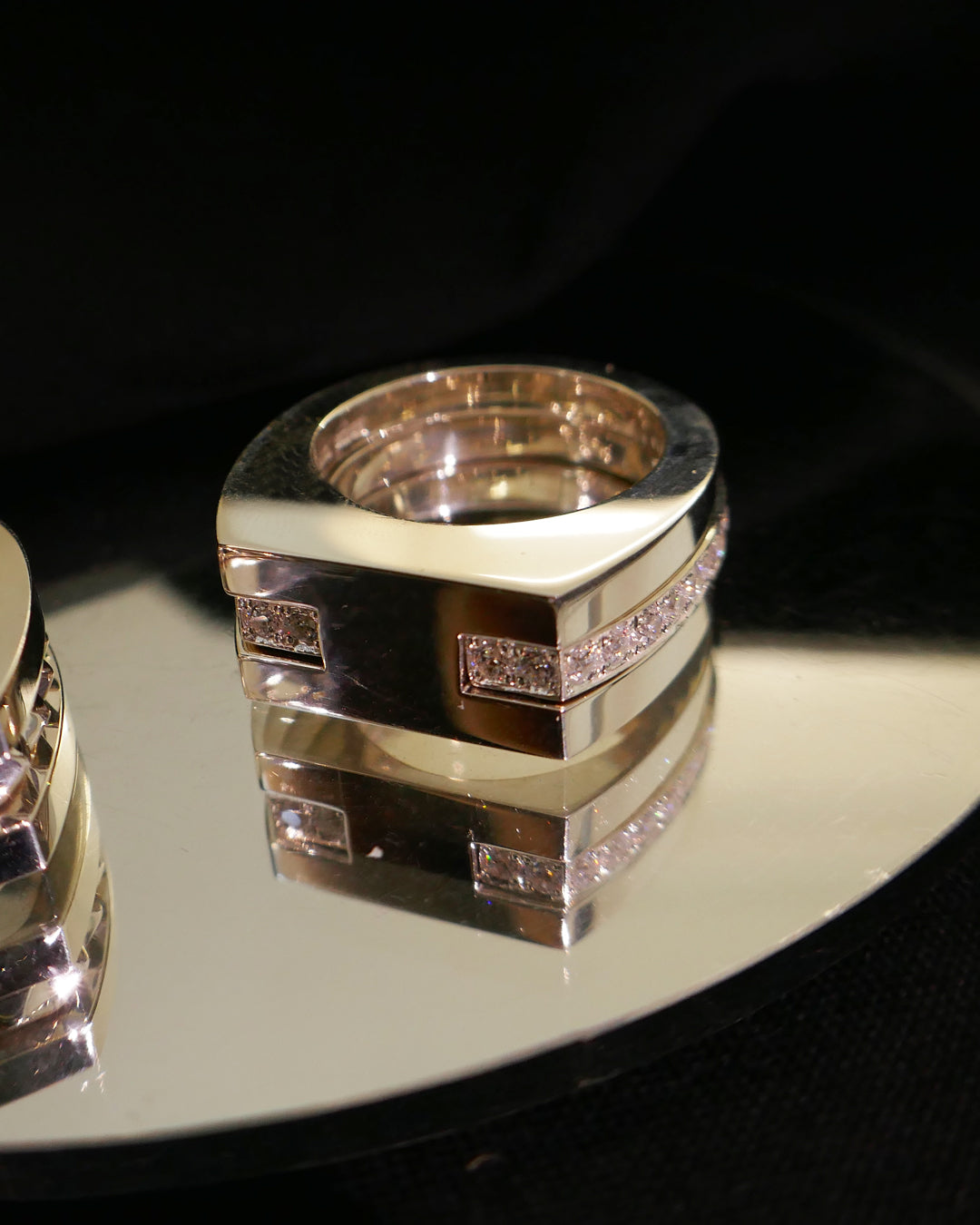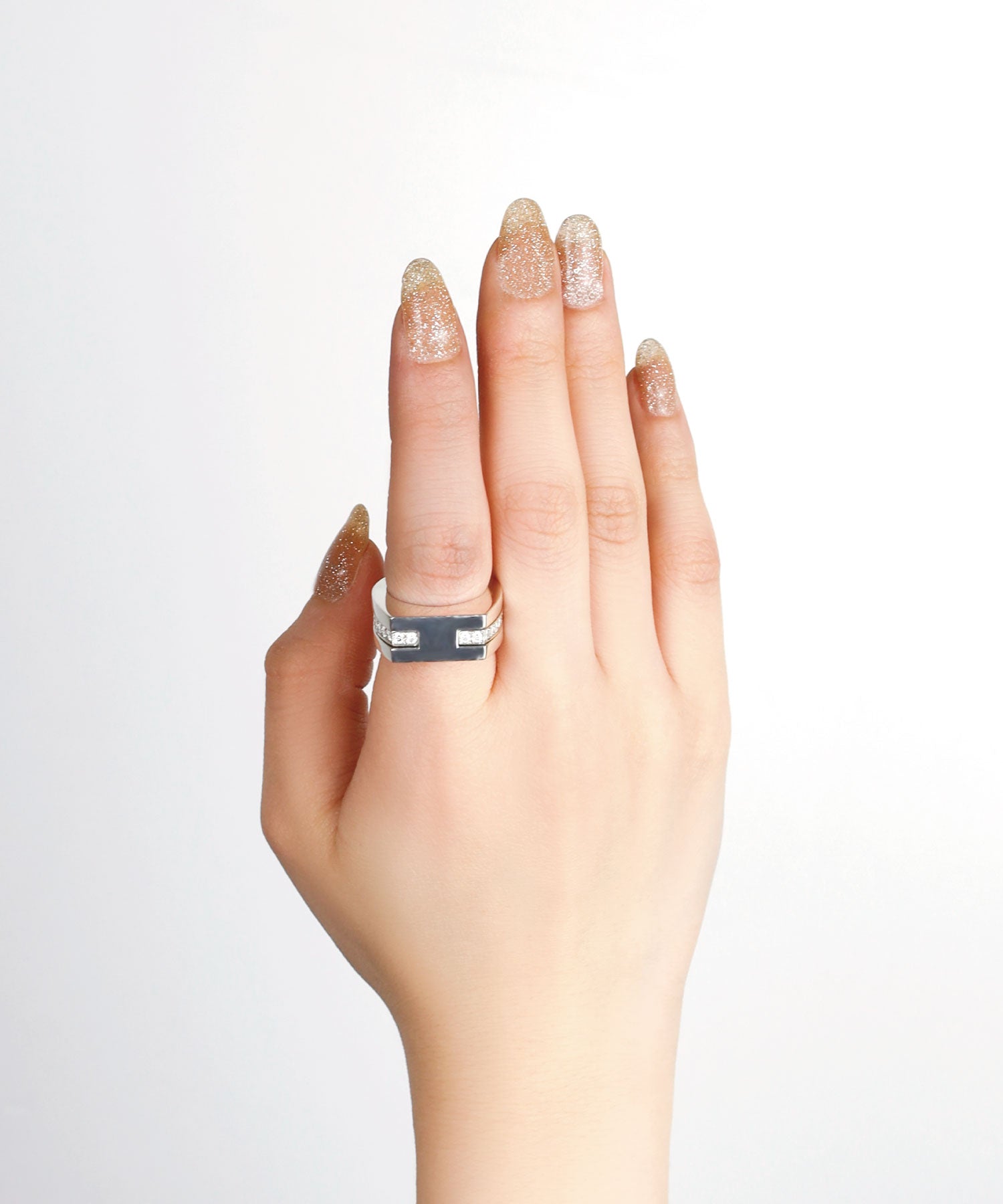 2つのパーツで構成されるこちらのリングは、センターのリングがセパレートできることで複数通りの着け方が可能です。