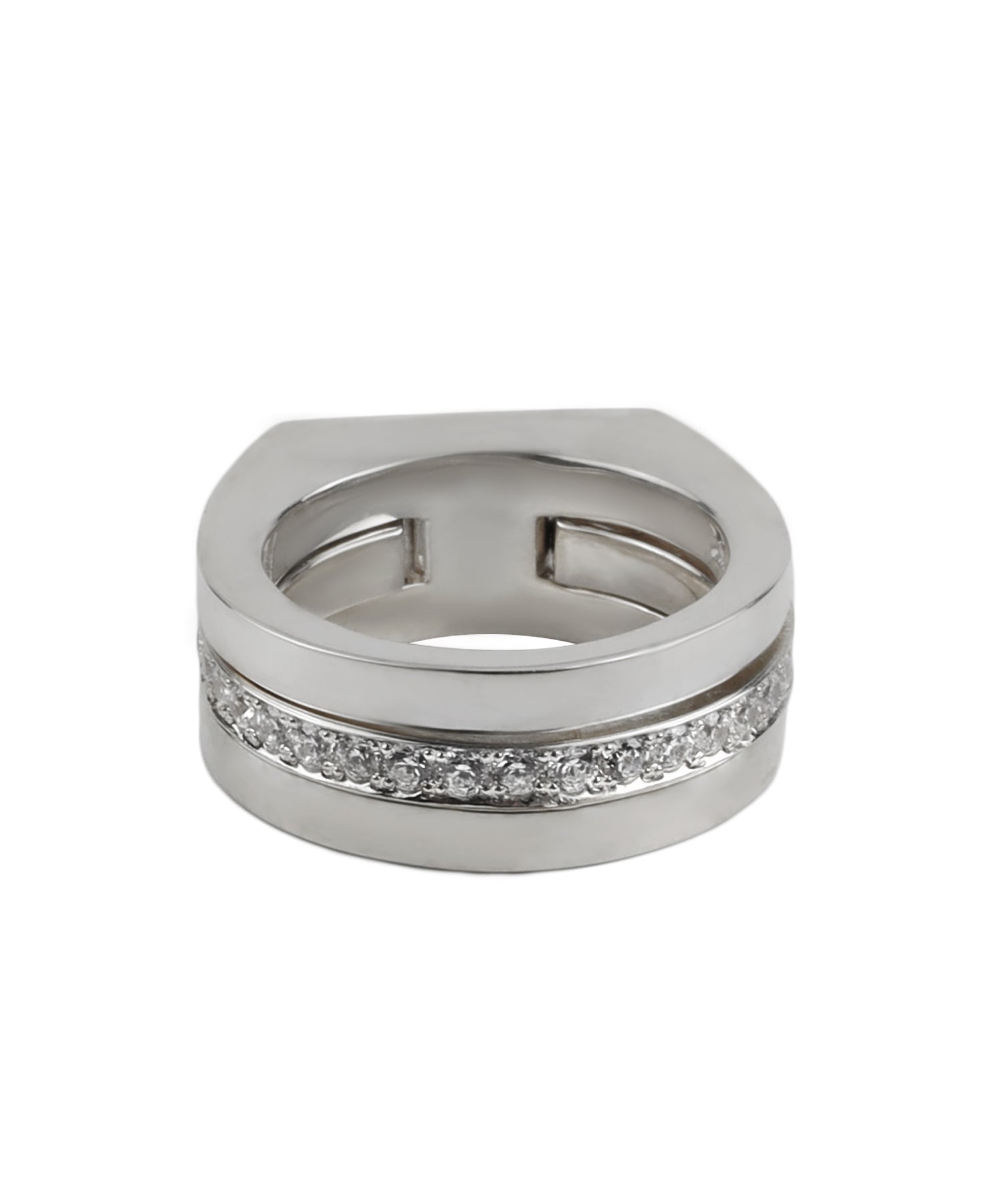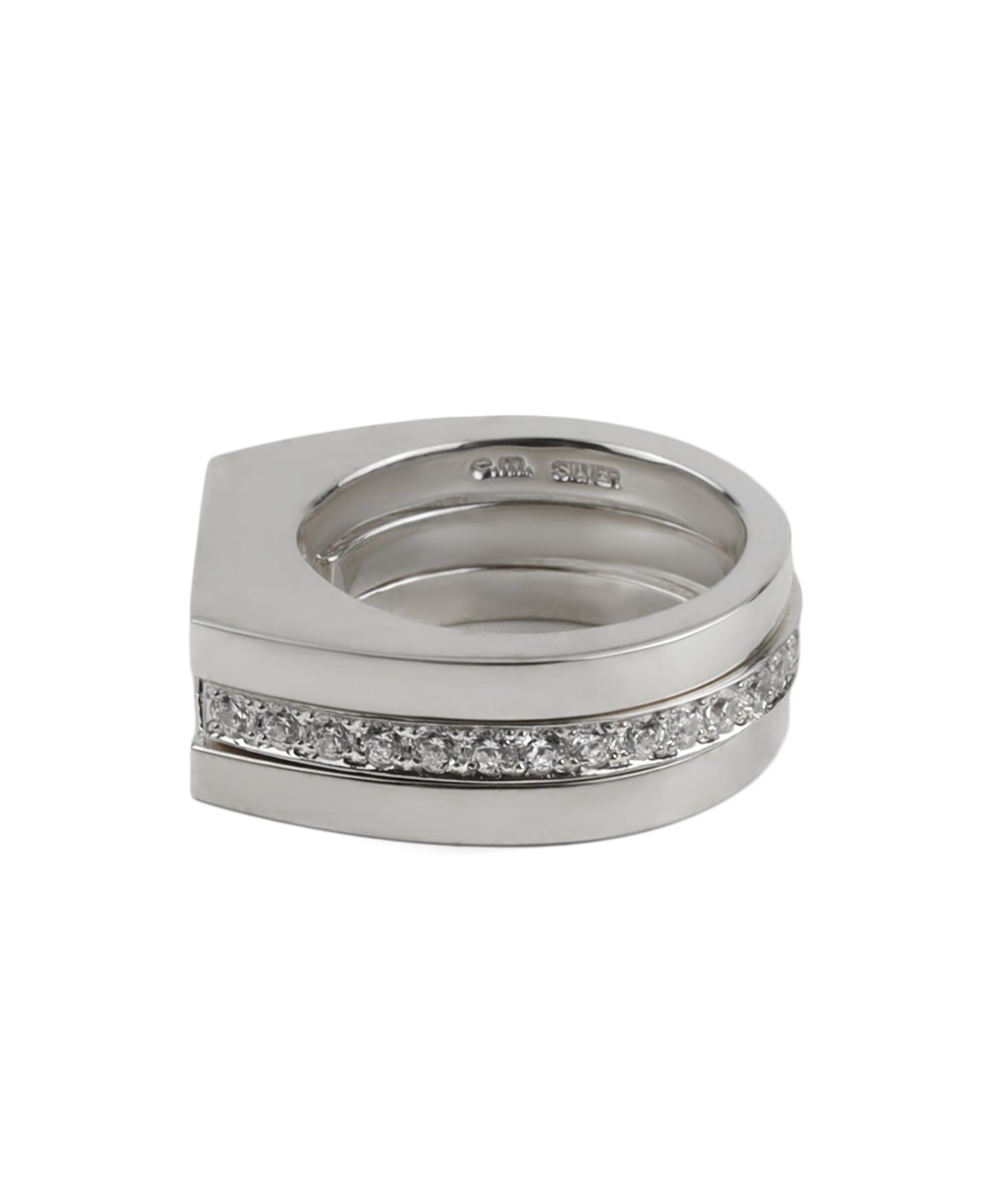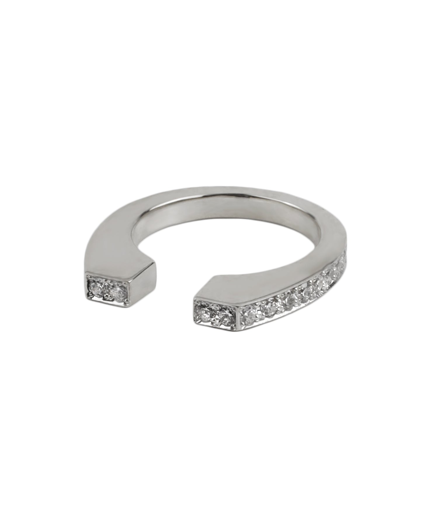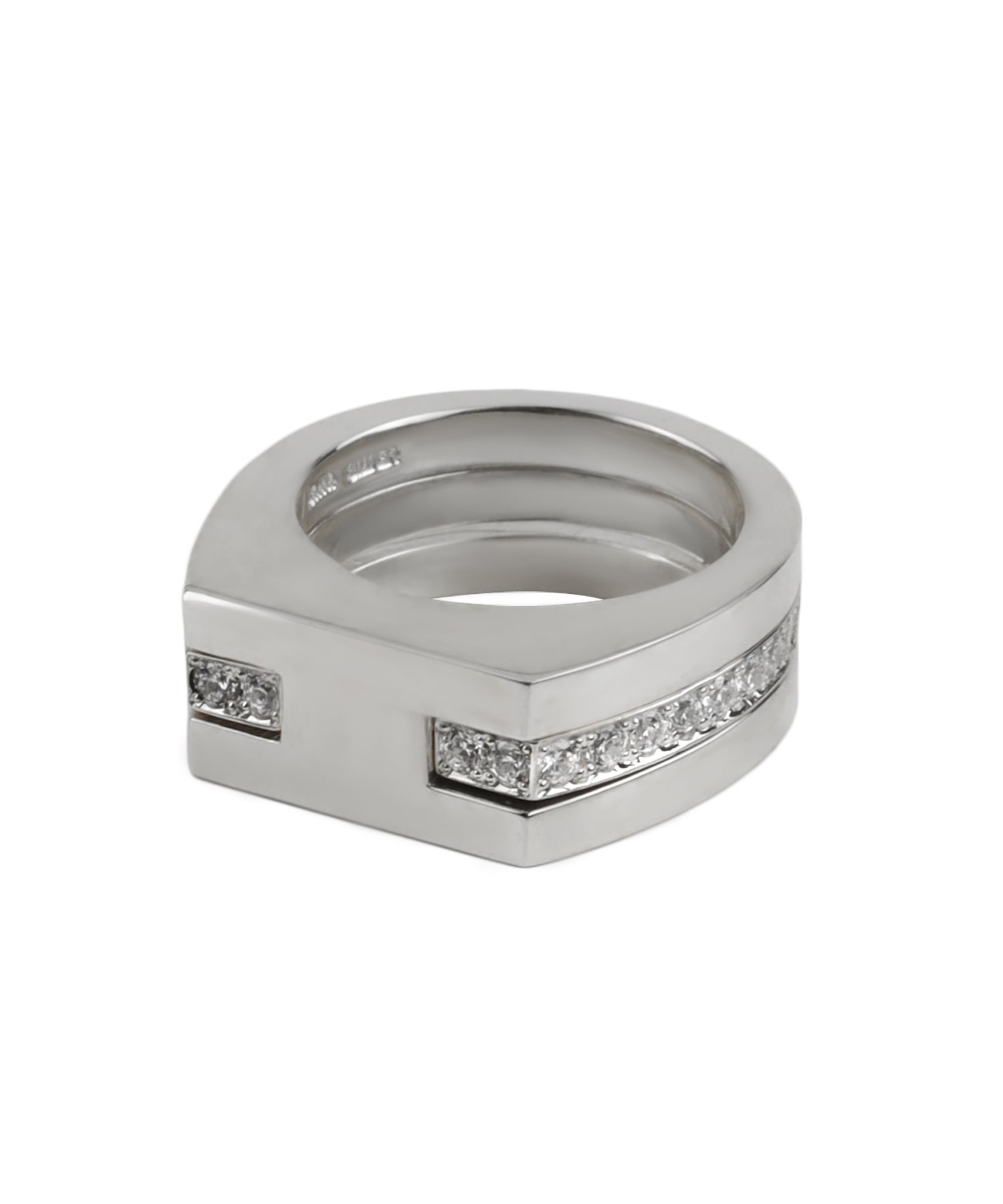 全体的に直線で仕立てたソリッドなデザインに、キュービックジルコニアの装飾がアクセントになっています。