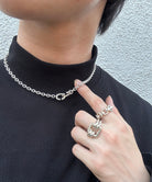 印台リングのアウトラインをカタチどった、抜け感のあるフォルム。
