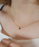 小さめの星モチーフが揺れるシンプルなゴールドネックレス。