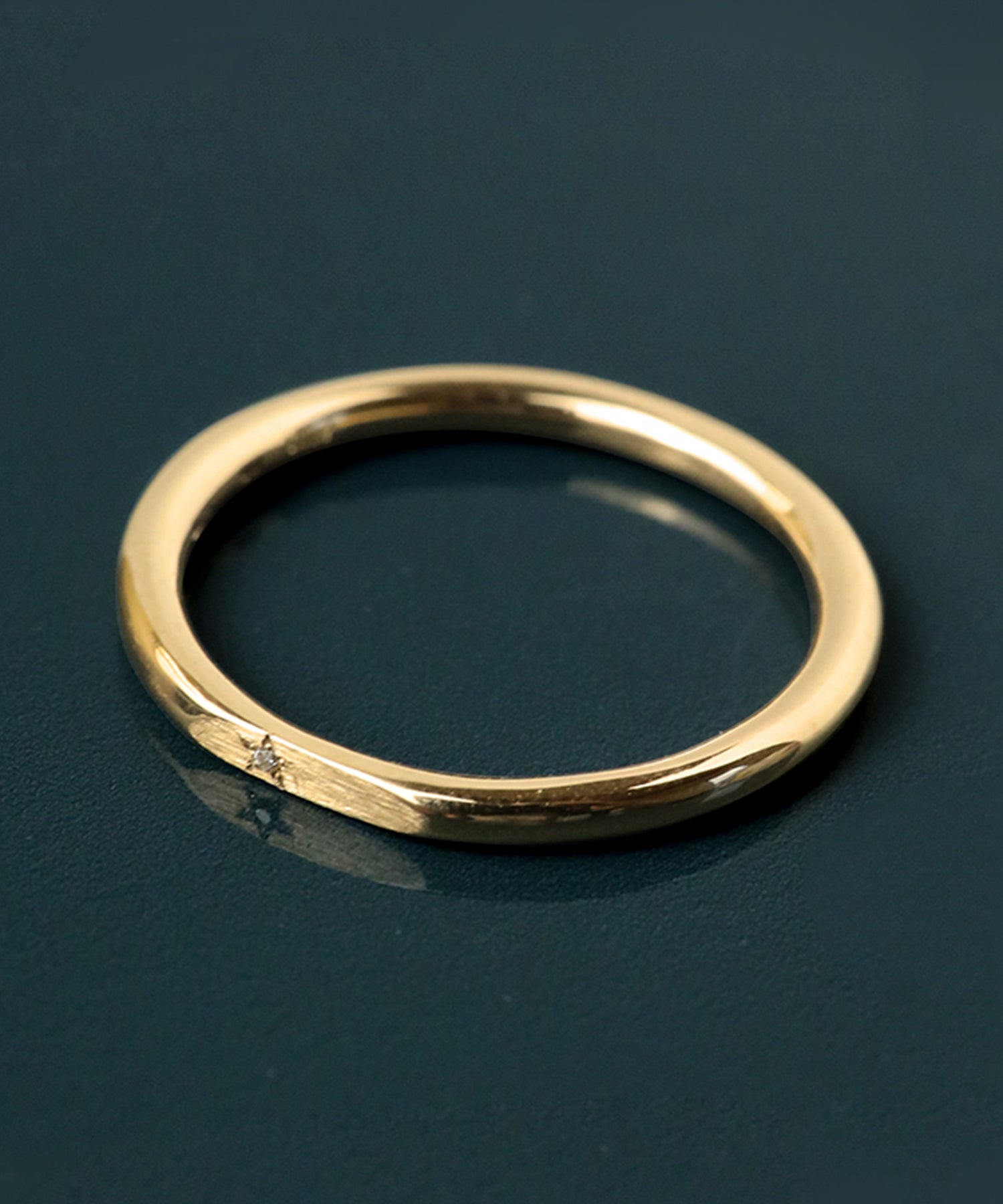 丸みのあるアームの一部をフラットにカットし、 ダイヤモンドを星彫りでセッティングしてアクセントをつけています。