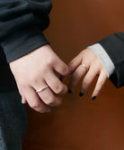 ファッショナブルなデザインは薬指以外にも、人差し指や中指での ぺアコーディネートもおすすめです。